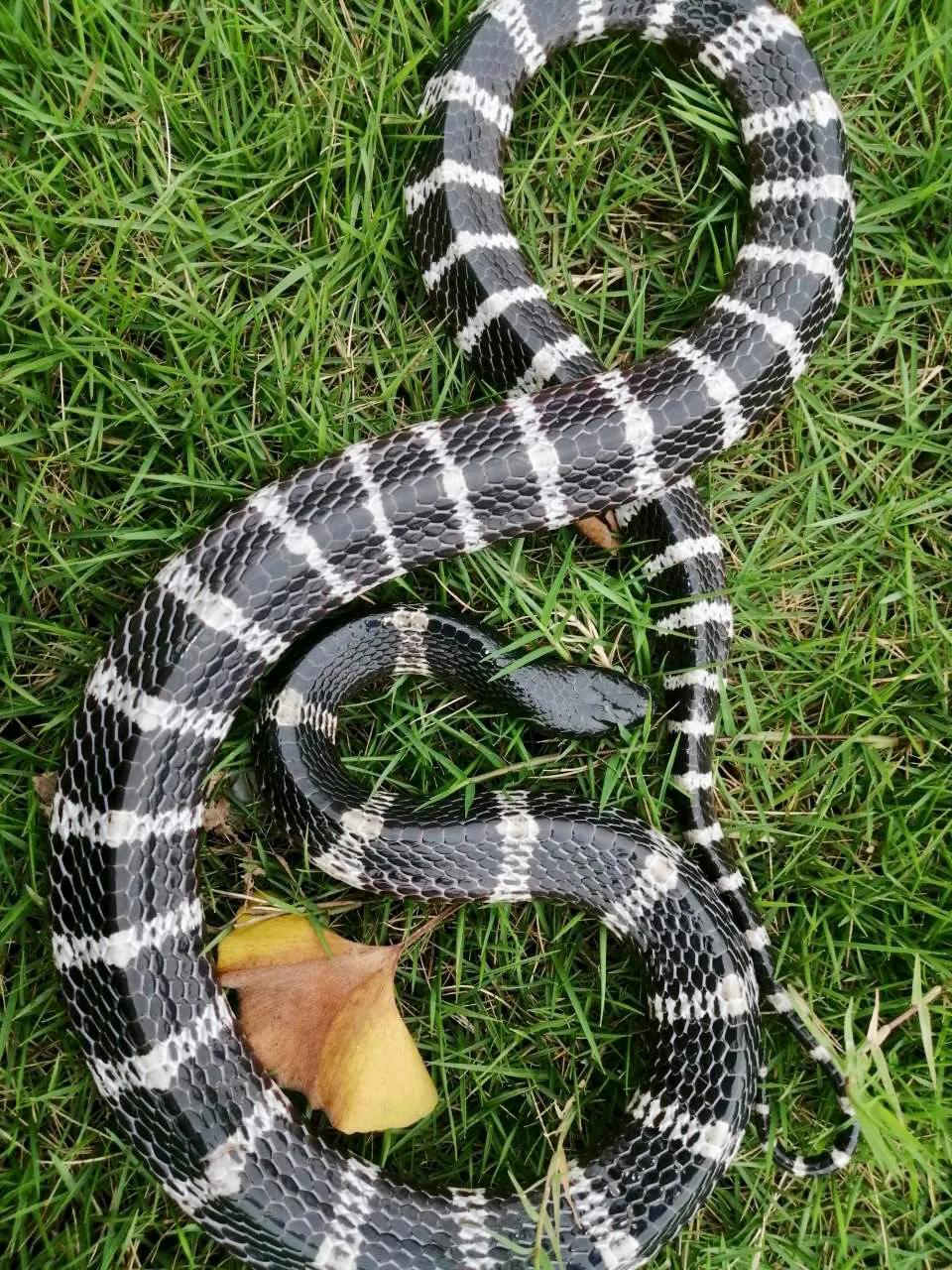银环蛇很像黑白链蛇,明显区别就是银环蛇是三角背,就是背上有点凸起,如果实在分不清,一律视为银环蛇。