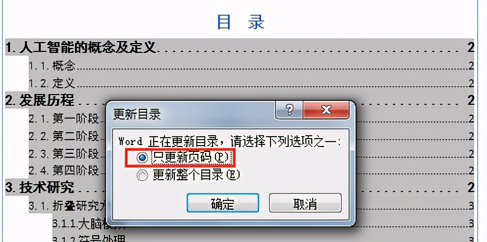 2.如果标题没变化,只是正文内容增减导致页码改变,这时在“更新域”时,只需要选择“只更新”页面,之前设置目录格式依然保留。