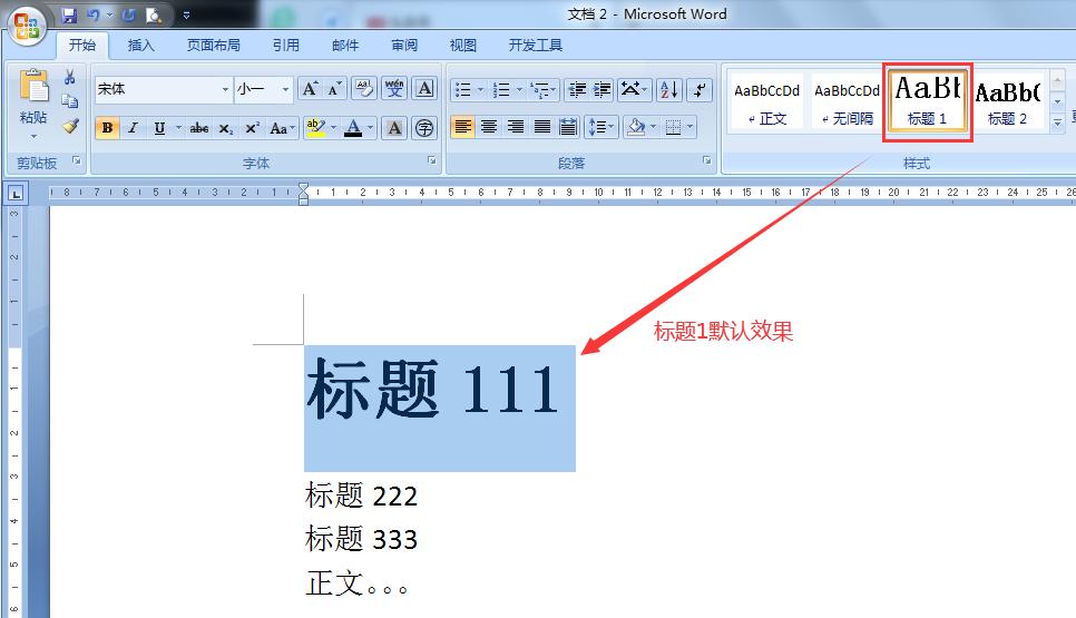 3.点击【开始】菜单栏下的【标题1】,效果如下: