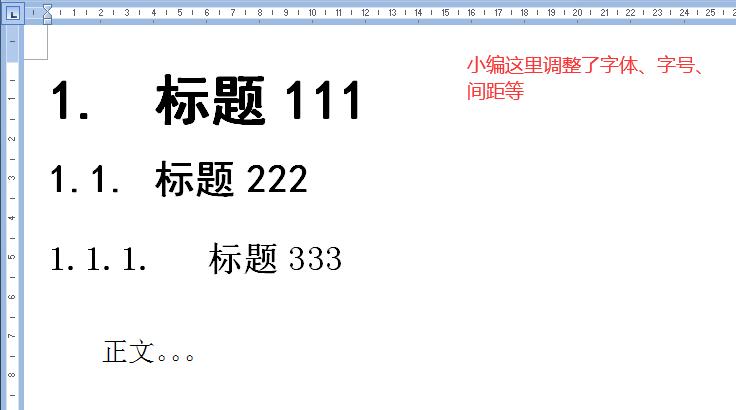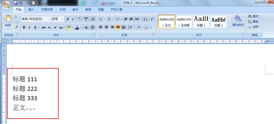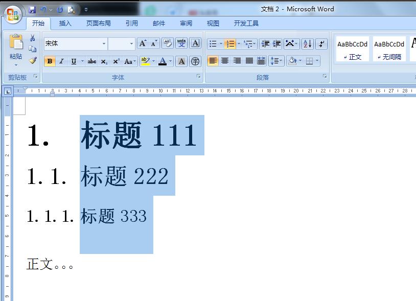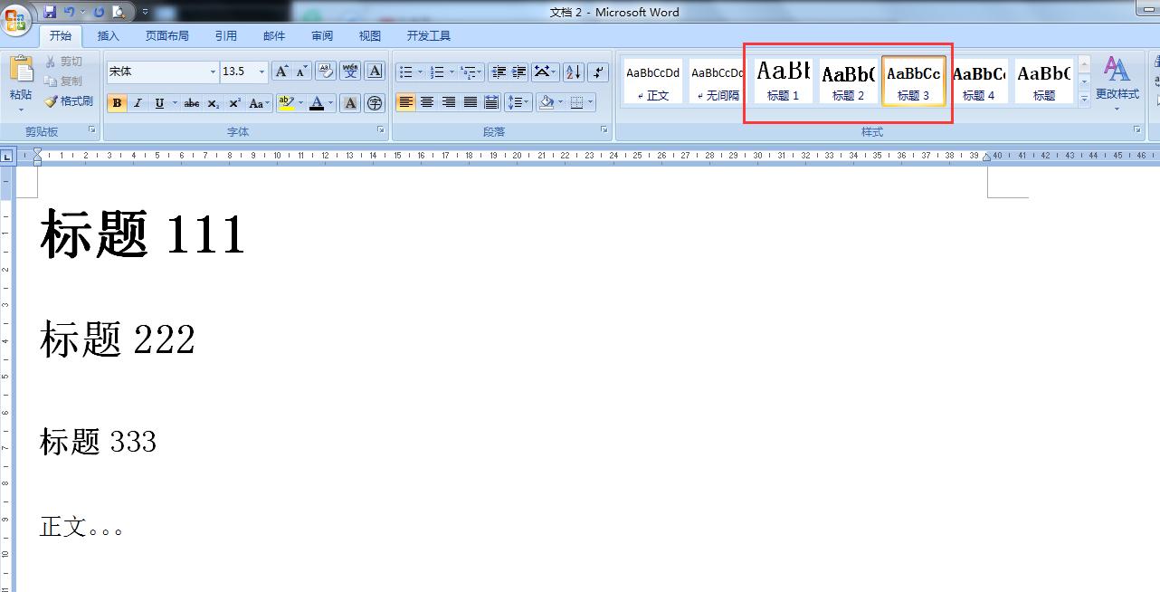 4.按照上面步骤,选中“标题222”后点击【标题2】,选中“标题333”后点击【标题3】,效果如下: