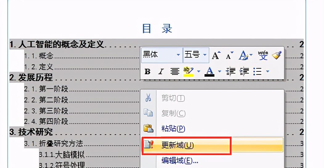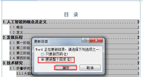 3.如果有新增标题,那么记得先用已有同级标题格式刷一下,然后再在目录处进行“更新域”操作(此时选择“更新整个目录”)