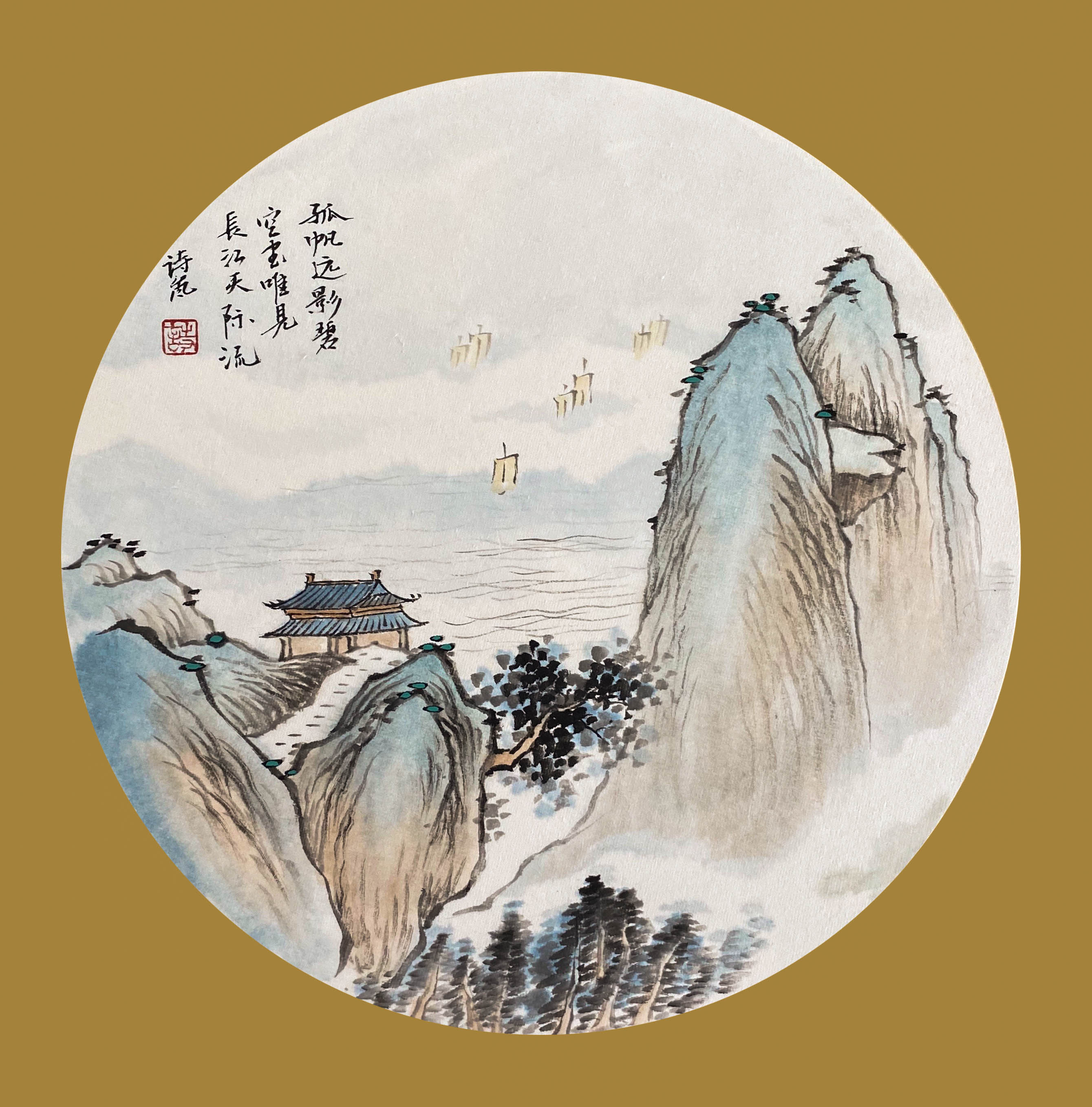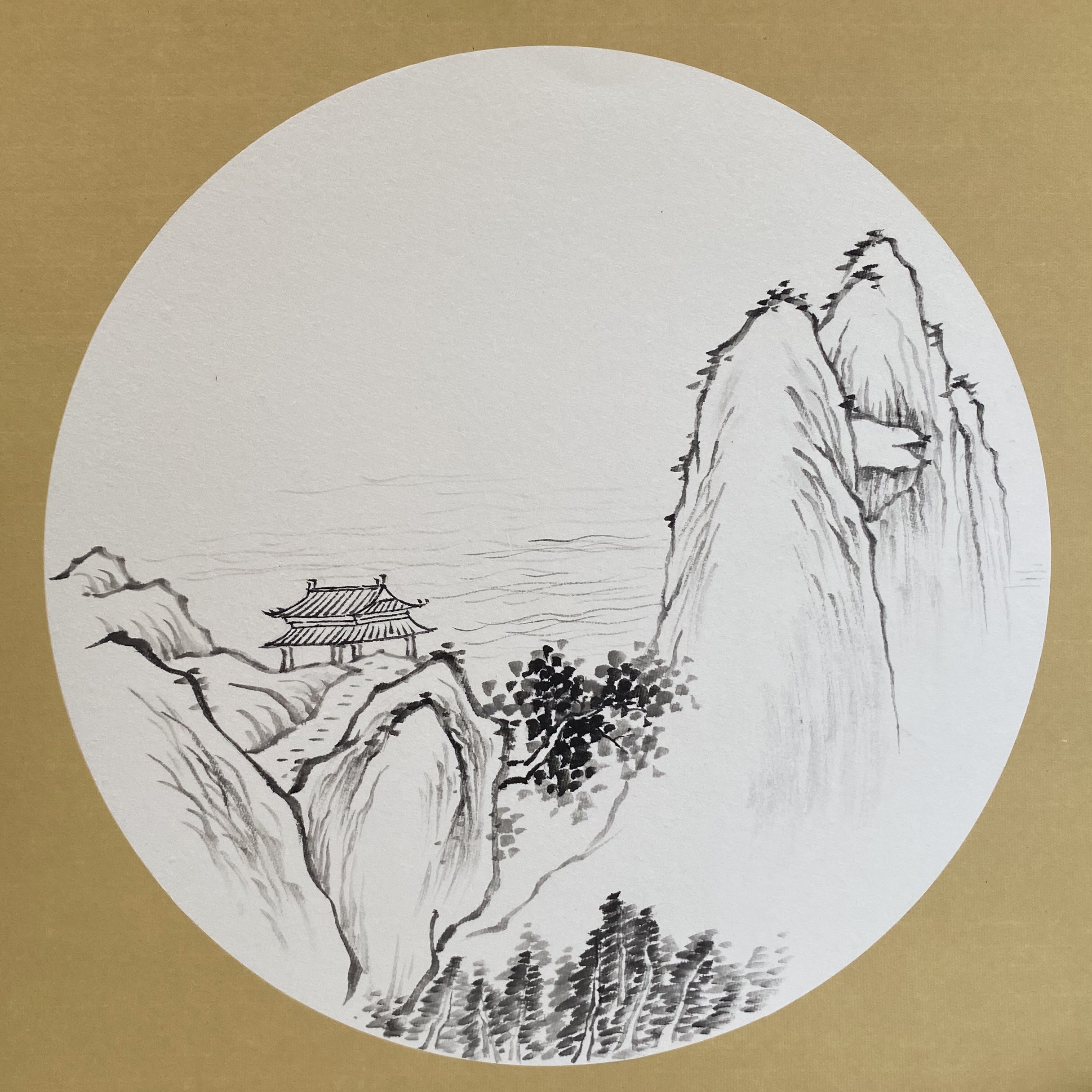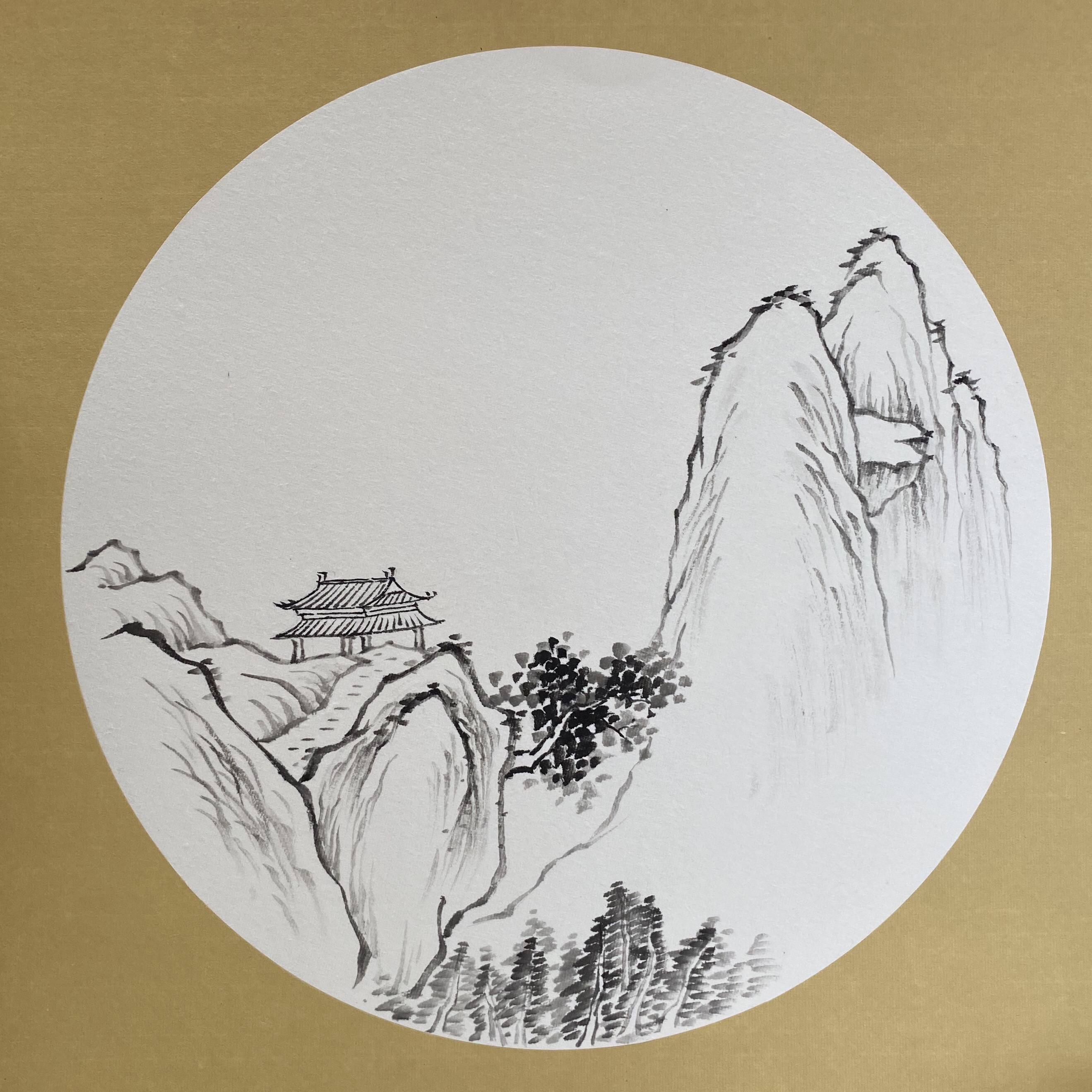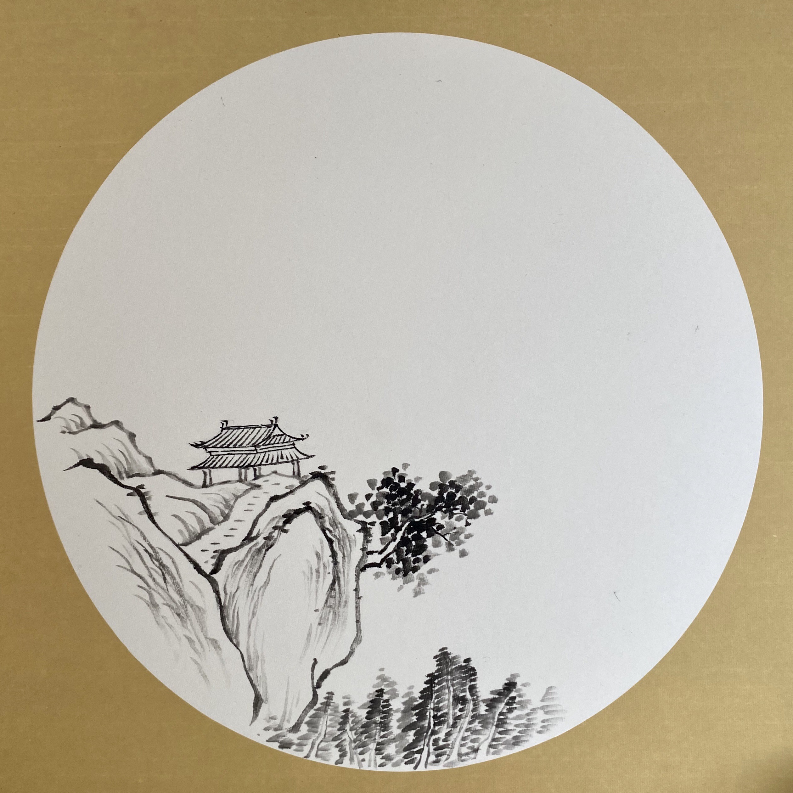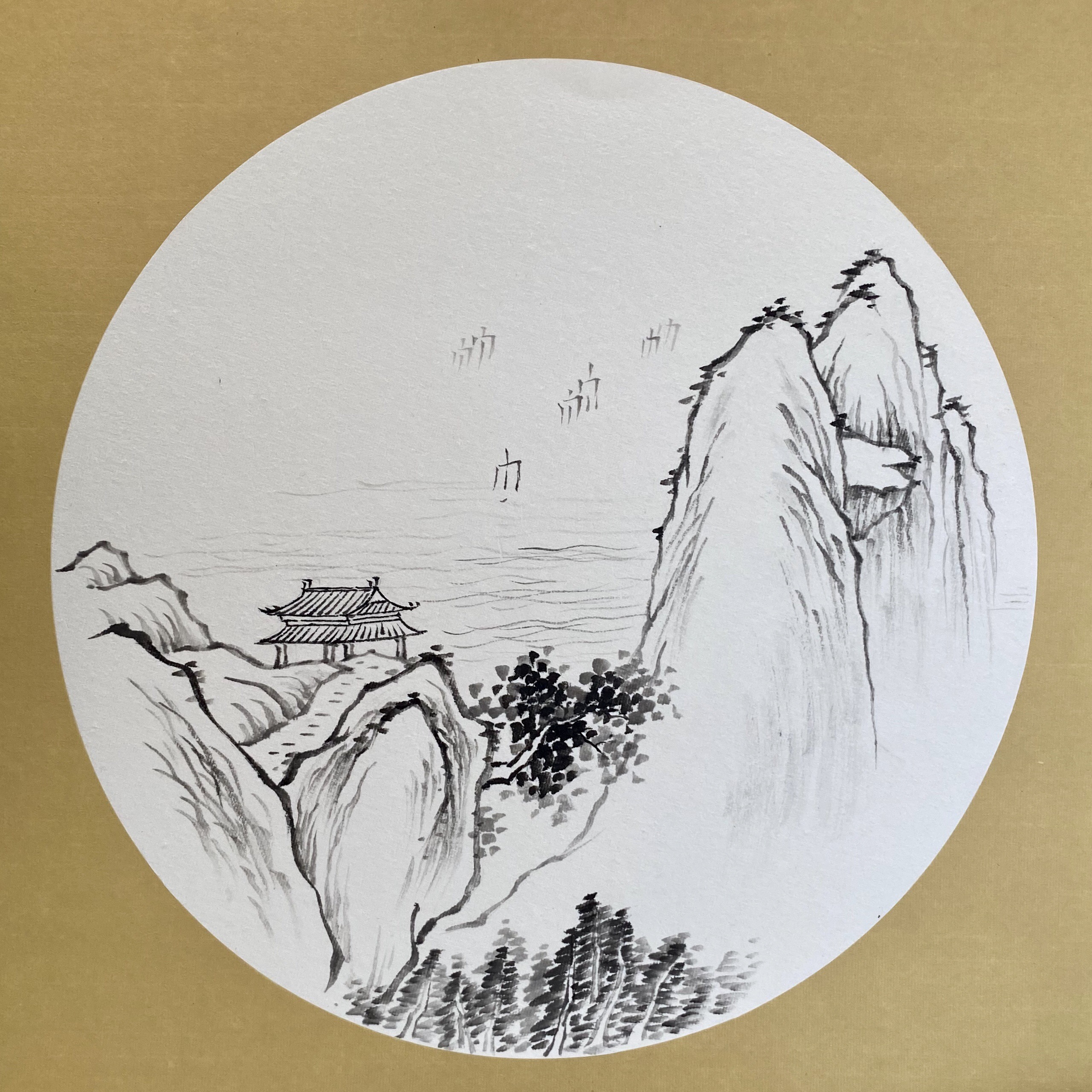 7.点景房屋在画的时候用笔要活,细劲有力。颜色用赭石,花青淡染。
