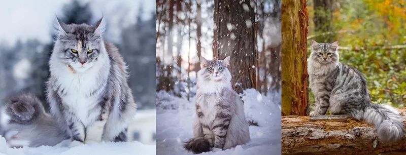 为了适应俄罗斯寒冷苛刻的环境,西森猫有着一身浓密的绒毛,最特别的是,它们的颈部长了一大圈厚实的大毛领,外层的毛发偏硬,底层的绒毛厚实细软,这才让它们足以抵御西伯利亚的严寒天气。