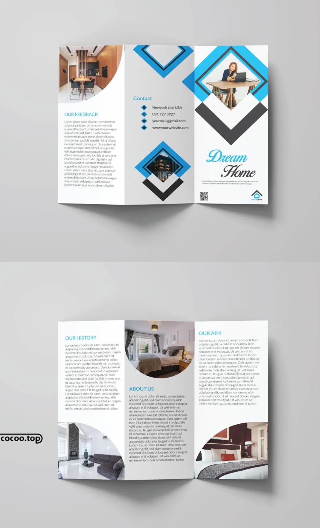 三折页常用的尺寸有大16开(285mm×210mm,折后尺寸为95mm×210mm)和大8开(420mm×285mm,折后尺寸为140mm×285mm)。
