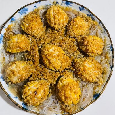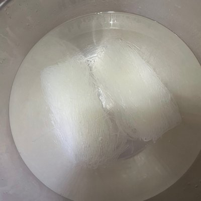 3、跑后的粉丝用剪刀剪几下 过冷水 放在盘底 然后摆好鲍鱼。