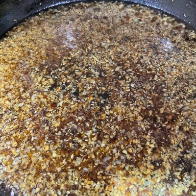6、加入事先调好的蚝油蒸鱼豉油和水的汁,熬汁两分钟。倒出来浇在鲍鱼上。