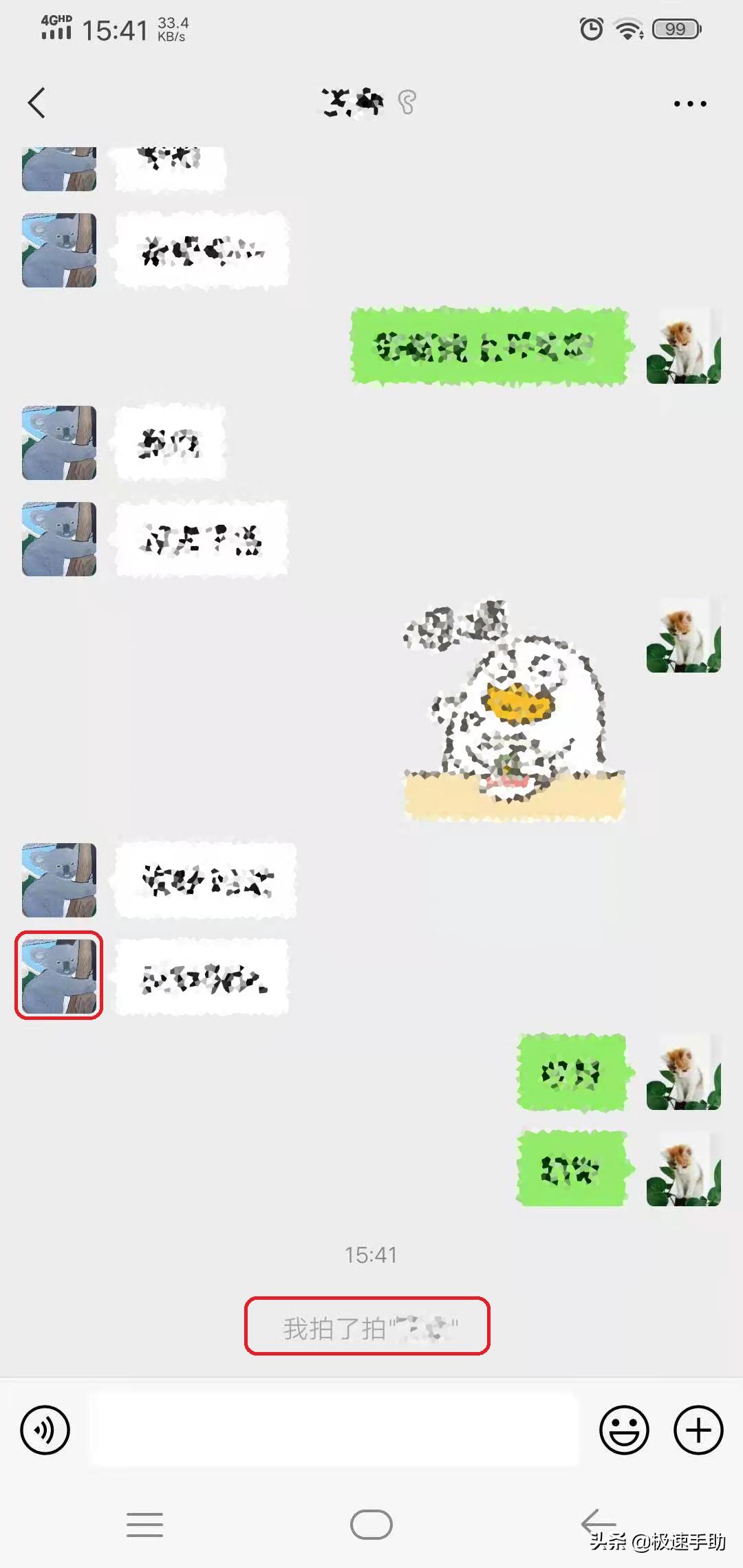 第三步,进入到聊天界面当中后,我们只需要双击好友的微信头像,就可以拍一拍他了,并且在聊天的界面当中,还会显示你拍一拍某某某。