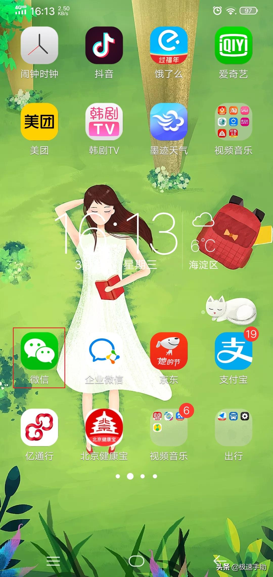第一步,首先在手机的主页面上,找到微信APP,然后双击打开。