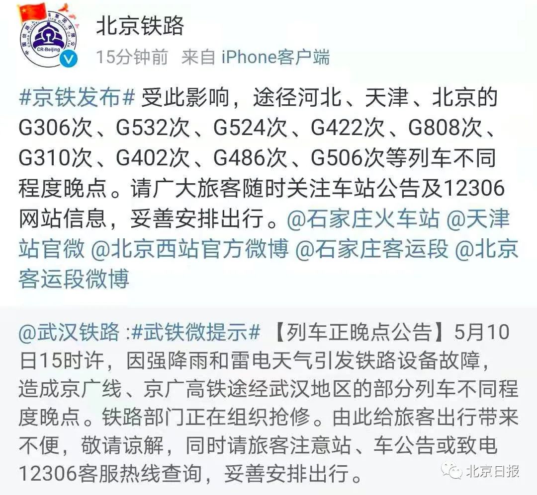 北京日报(ID:Beijing_Daily)综合@北京铁路、@湖北日报、@湖北之声、@中国天气等
