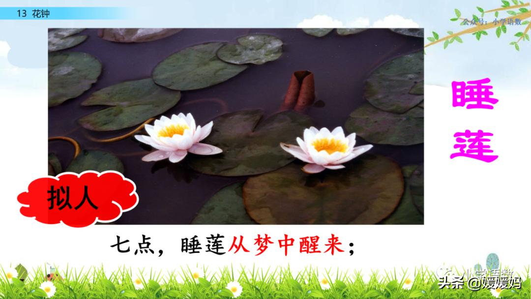 五、例如:清晨六点,龙葵花绽开了笑脸;下午五点,紫茉莉在暮色中苏醒;晚上七点,剪秋萝舒展开魅力的花瓣。