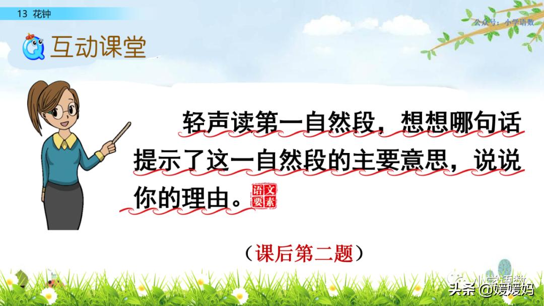 课文第1自然段大意:一天内,不同的花开放的时间是不同的;