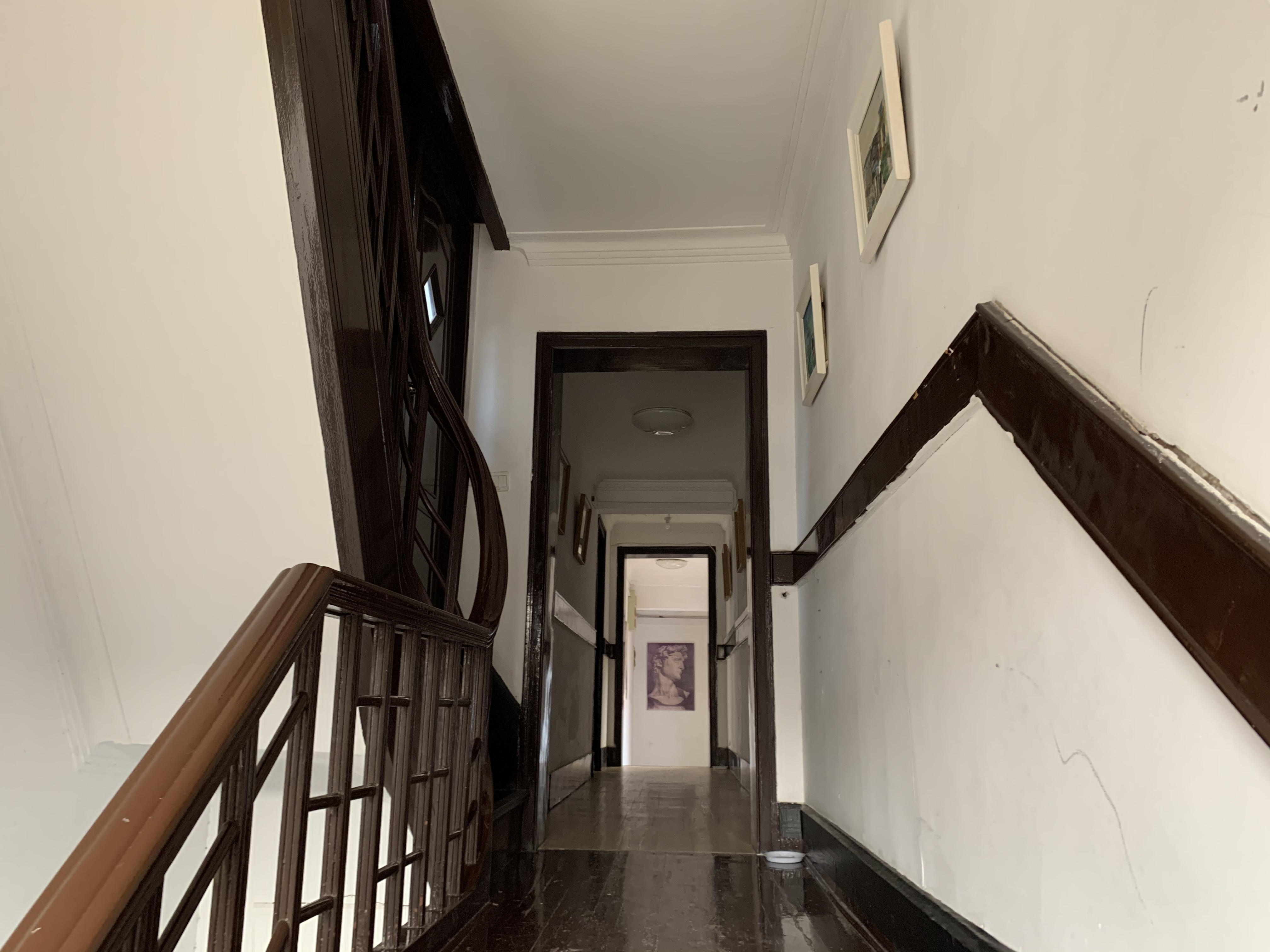 从外往里看,小红楼正门两旁各有一棵百余岁的罗汉松,遒劲的树干、繁茂的枝叶,犹如一位仙风道骨的老人。穿过客厅,可见一条长廊,右侧连接起客房,左侧是通往二楼的棕色木质楼梯,楼梯扶手经过岁月打磨,透出光亮的色泽。