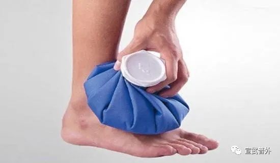 冰敷是让受伤部位温度降低,减轻炎症反应和肌肉痉挛,缓解疼痛抑制肿胀。越早冰敷效果越好,受伤后有条件时应立即用冰袋隔着毛巾冰敷受伤部位,避免冰袋直接接触皮肤,以防冻伤。如果是在公园或野外受伤时,则应尽量利用身边的可利用资源进行冰敷,如用冰的矿泉水或用毛巾沾上泉水敷在受伤部位。受伤后24小时内严禁热敷以防止加重毛细血管破裂、组织渗出,加重出血及肿胀。