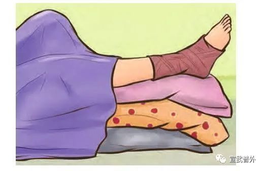 抬高是增加静脉淋巴回流,减轻肿胀,促进恢复。用垫枕抬高患肢,高于心脏,不能抬高踝关节的同时上身坐起,那样踝关节的血液不能向心脏有效地回流,从而达不到消肿的效果。