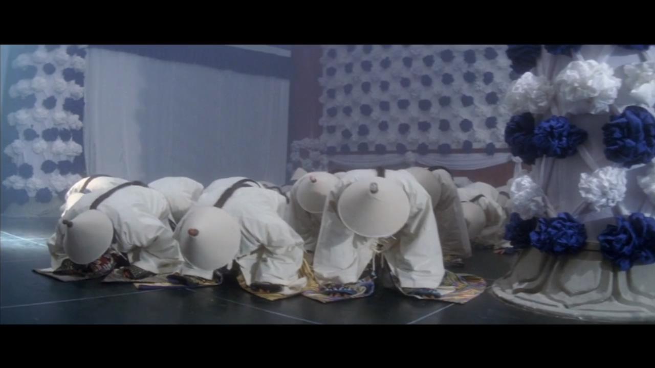 第一场镜头出现在咸丰皇帝葬礼上,慈禧与六王爷奕訢私会,同葬礼上文武百官的哭丧形成了鲜明的反差,两组交叉的蒙太奇镜头将欲望和人性的冲突表现得极其强烈。