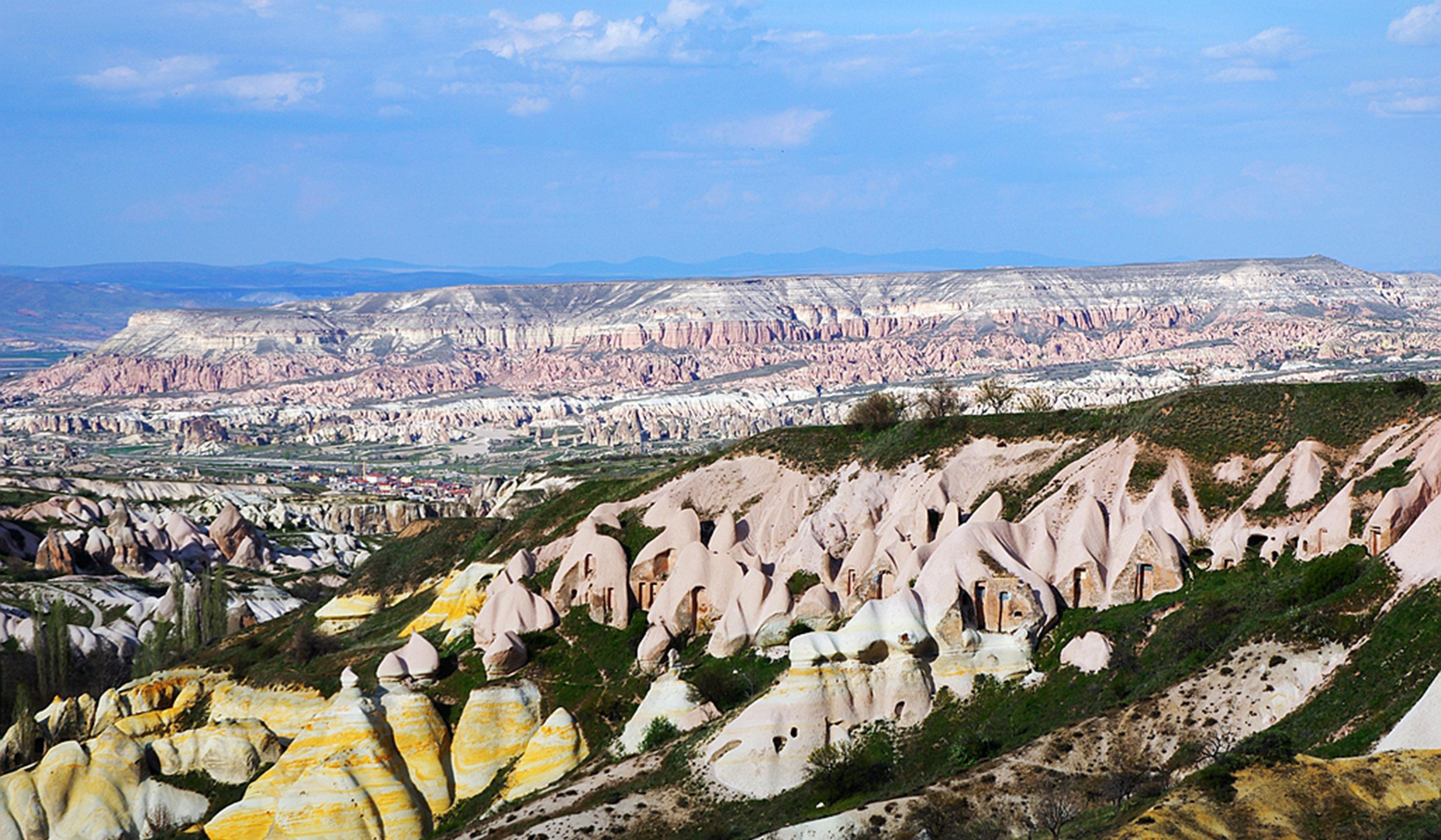 既然,不是风力作用,那么很有可能就是流水作用的结果,沟壑和谷涧地形,也符合流水汇聚的地形条件,流水侵蚀应该是形成石柱的主要原因。实际上,我们知道土耳其地处印度洋板块和欧亚板块的消亡边界,两大板块南北向的碰撞挤压,使得土耳其所在地区抬升隆起形成安纳托利亚高原。此外,由于地处板块交界处附近,土耳其也是一个多火山活动的国家。