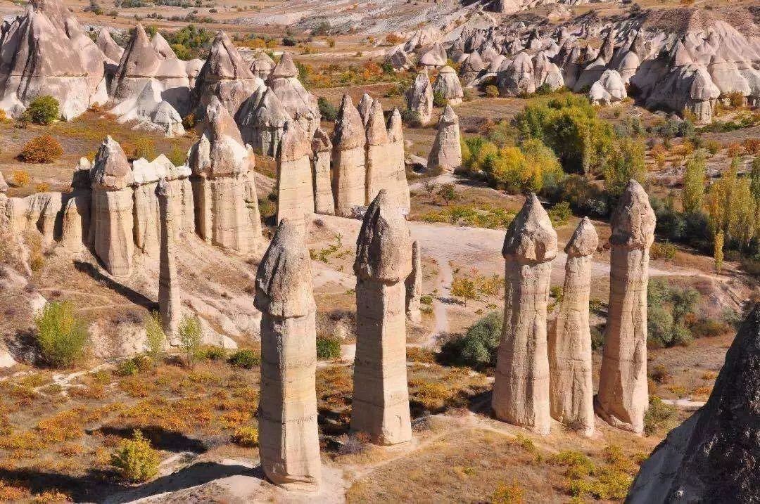 今天,我们要介绍的一处自然景观就位于土耳其的卡帕多西亚地区,卡帕多西亚地区位于土耳其首都安卡拉东南,大约两个多小时的车程。这里是土耳其的内陆高原地区,在这里的沟壑和谷涧中分布着许多石柱,这些石柱拔地而起,形态很像蘑菇,又像耸立的高塔,更为壮观的是在这里分布着数量极为众多的石柱,这些石柱就像是一颗颗树木,人们就称其为“石柱森林”。