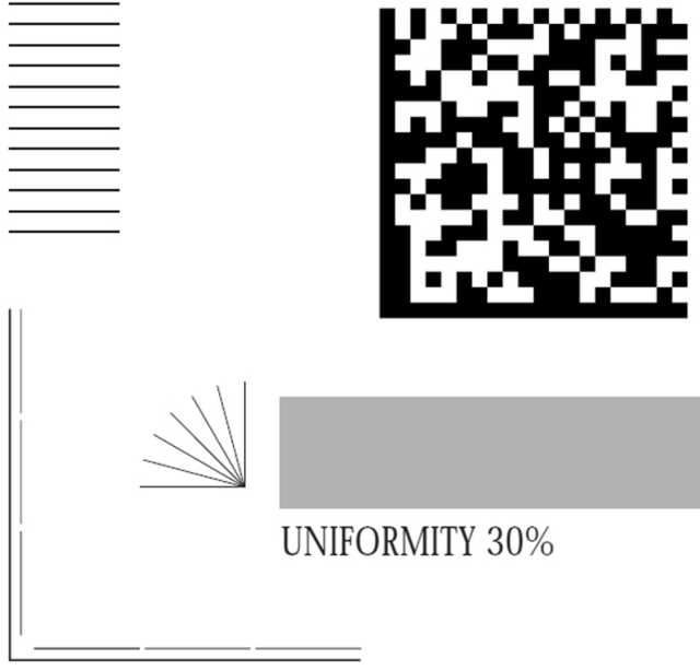 从上图打印文档样张和KDY局部样张,可以看出小到4P的字体用户也能清晰阅读。从效果来看打印的文档字迹清晰、页面干净、黑度足够,让人阅读感舒适。在30%灰度一致性的测试样张中,可以看出不同灰阶打印的横线、竖线平顺,在斜线部分控制的也较为不错。