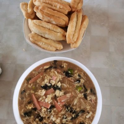 中国人的传统早餐,油条+豆腐脑,上次发了一个小油条的做法,这次配上一份豆腐脑,绝配!