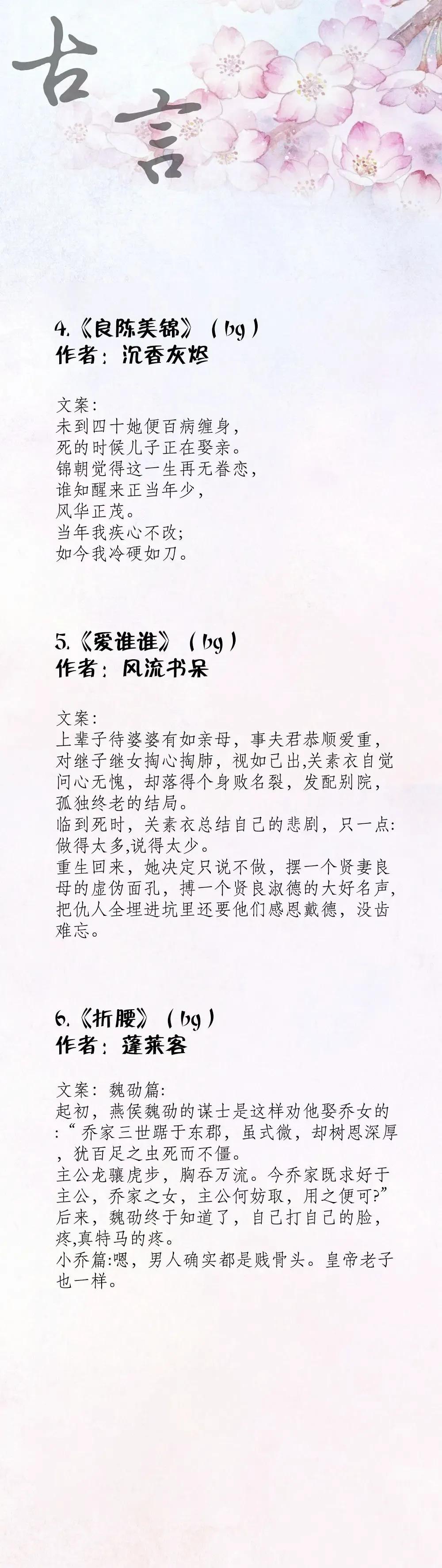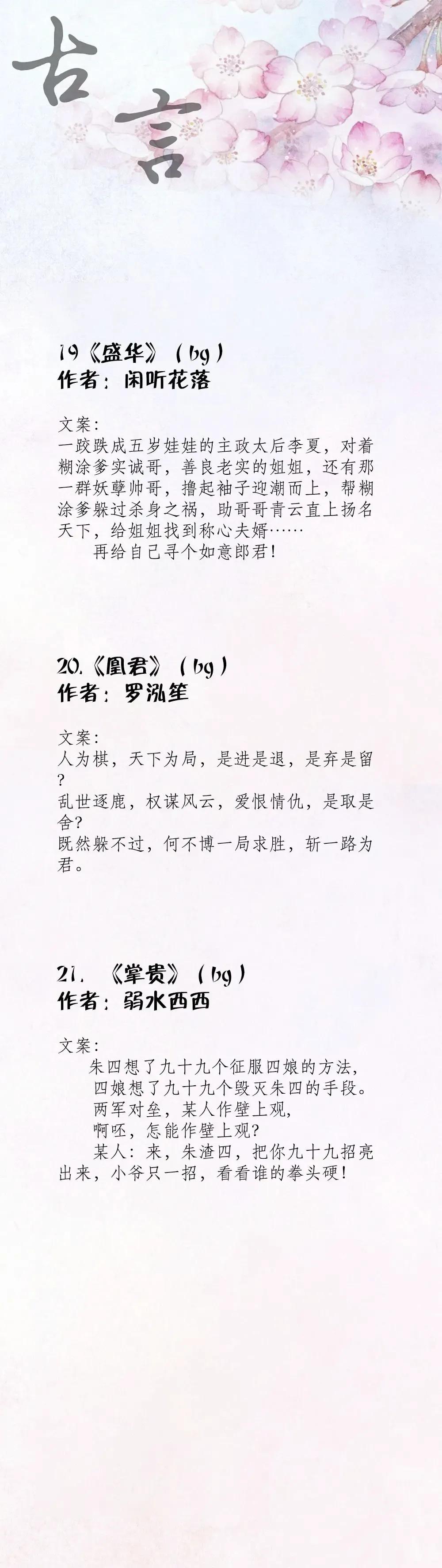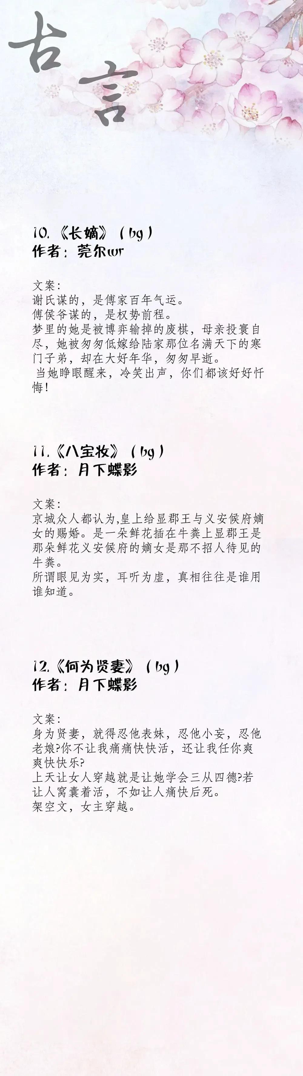 都是老书虫看了N遍的古言,本本堪称经典。故事精彩设定严谨,文笔剧情都有保证,感兴趣的书友记得收藏哦!