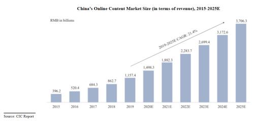 目前看,内容市场增长空间依然较大。招股书显示,2019年-2025年,中国在线内容市场规模年均复合增长率为21.4%,到2025年市场规模可达3.7万亿元。
