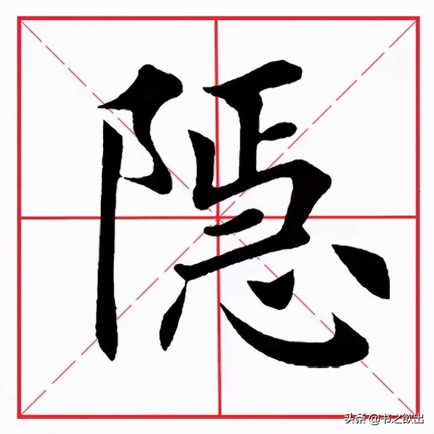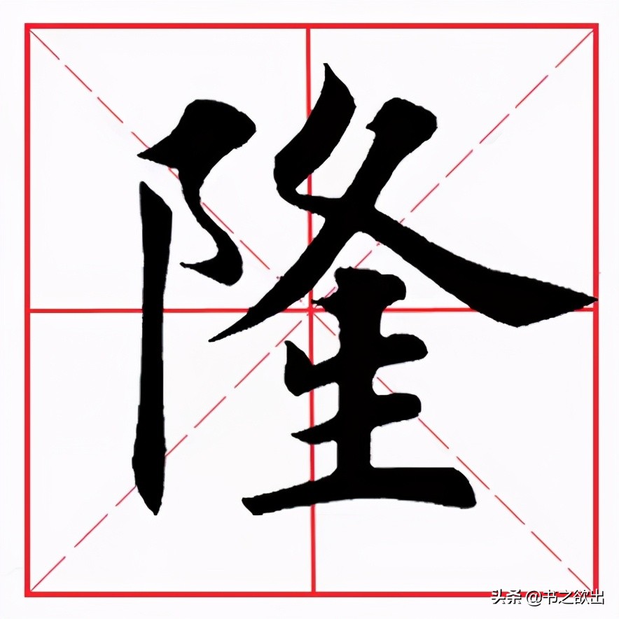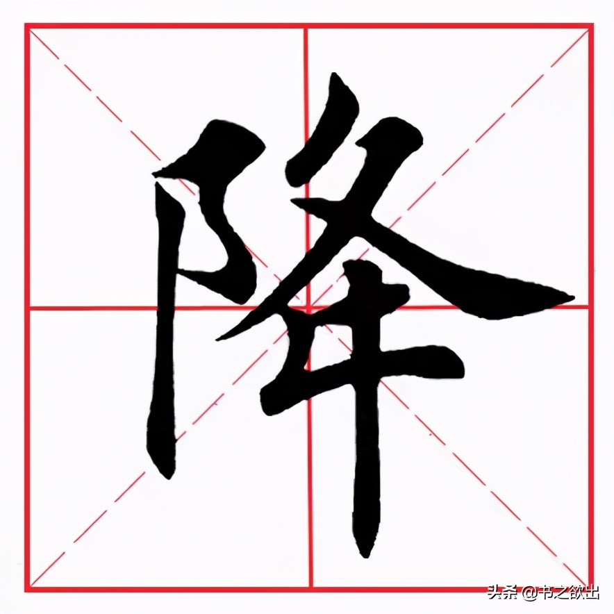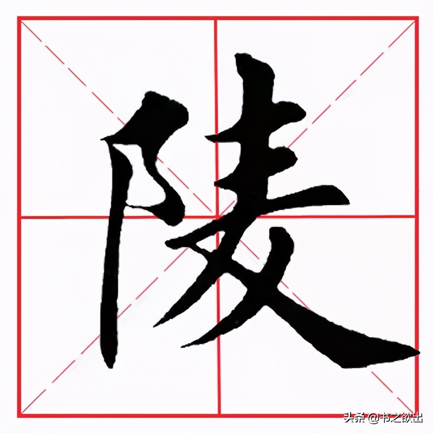左耳钩,又叫“左耳旁”,形态小巧灵活,却又不失力度,通常应用于汉字左边,如“阳”、“隆”、“陈”、“随”等字,如图所示:
