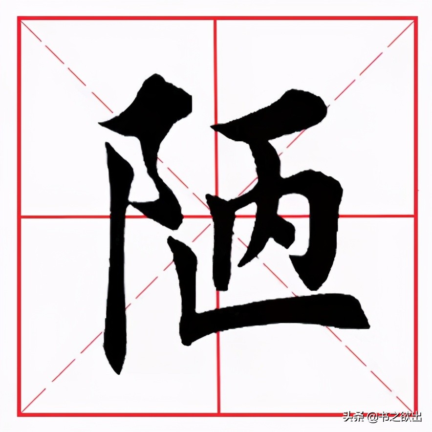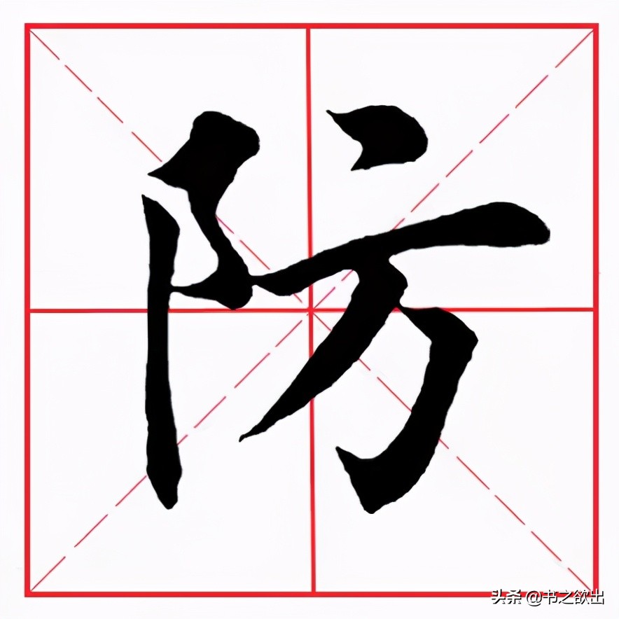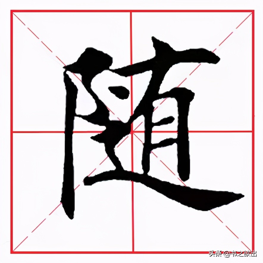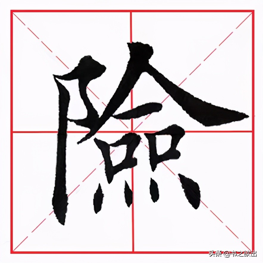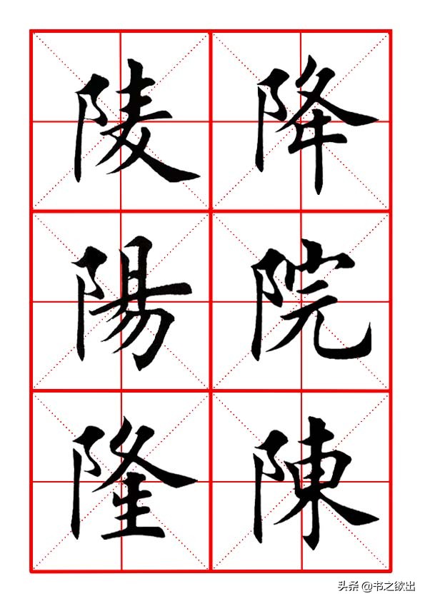 左耳钩,又叫“左耳旁”,形态小巧灵活,却又不失力度,通常应用于汉字左边,如“阳”、“隆”、“陈”、“随”等字,如图所示: