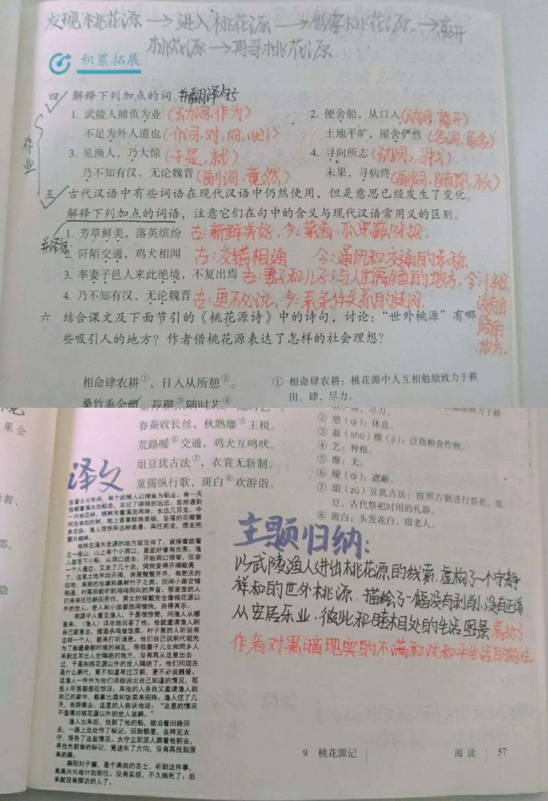 已武陵渔人进出桃花源的线索,虚构了一个宁静祥和的世外桃源,描绘了一个没有剥削、人人安居乐业、彼此和睦相处的生活图景,表达了作者对黑暗现实的不满和对和平生活的向往。