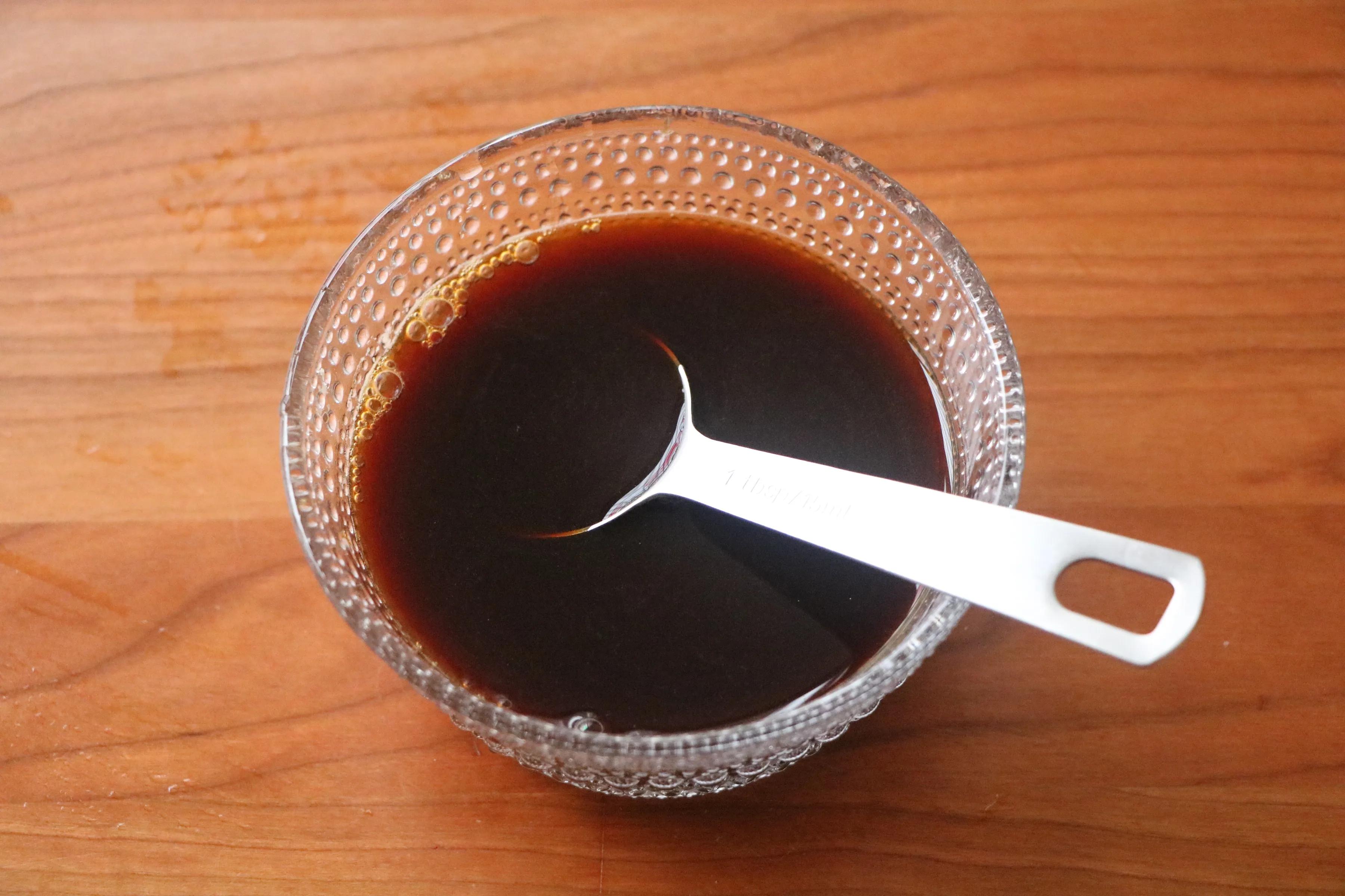 5、再来调一碗酱汁:生抽1勺 老抽半勺 蚝油1勺 盐半勺 米醋1勺 淀粉1勺 最后用半碗清水搅匀备用;