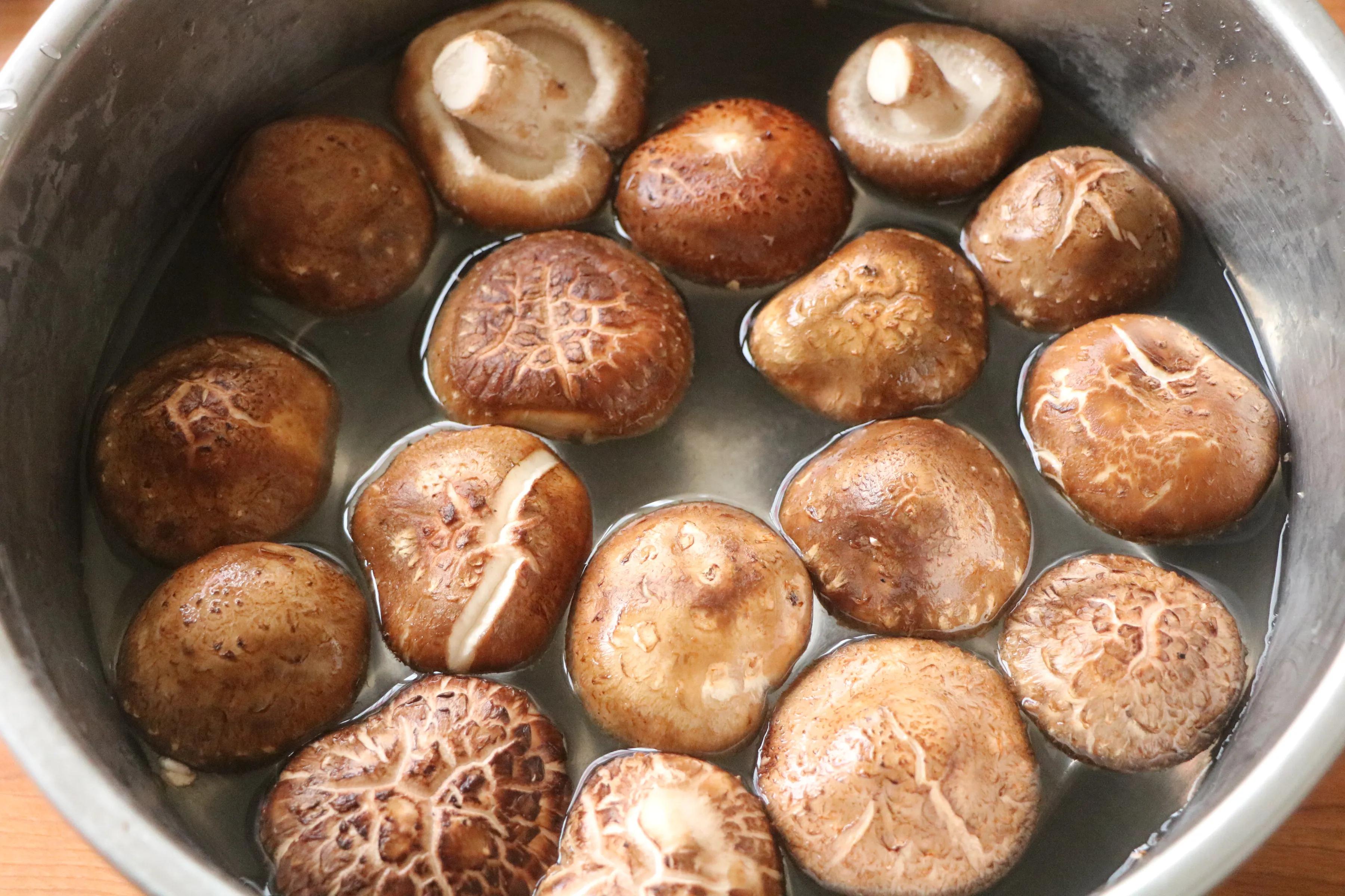 2、香菇清洗干净,一定是要流动的清水把香菇的窝窝里面也冲洗干净;再浸泡10几分钟;
