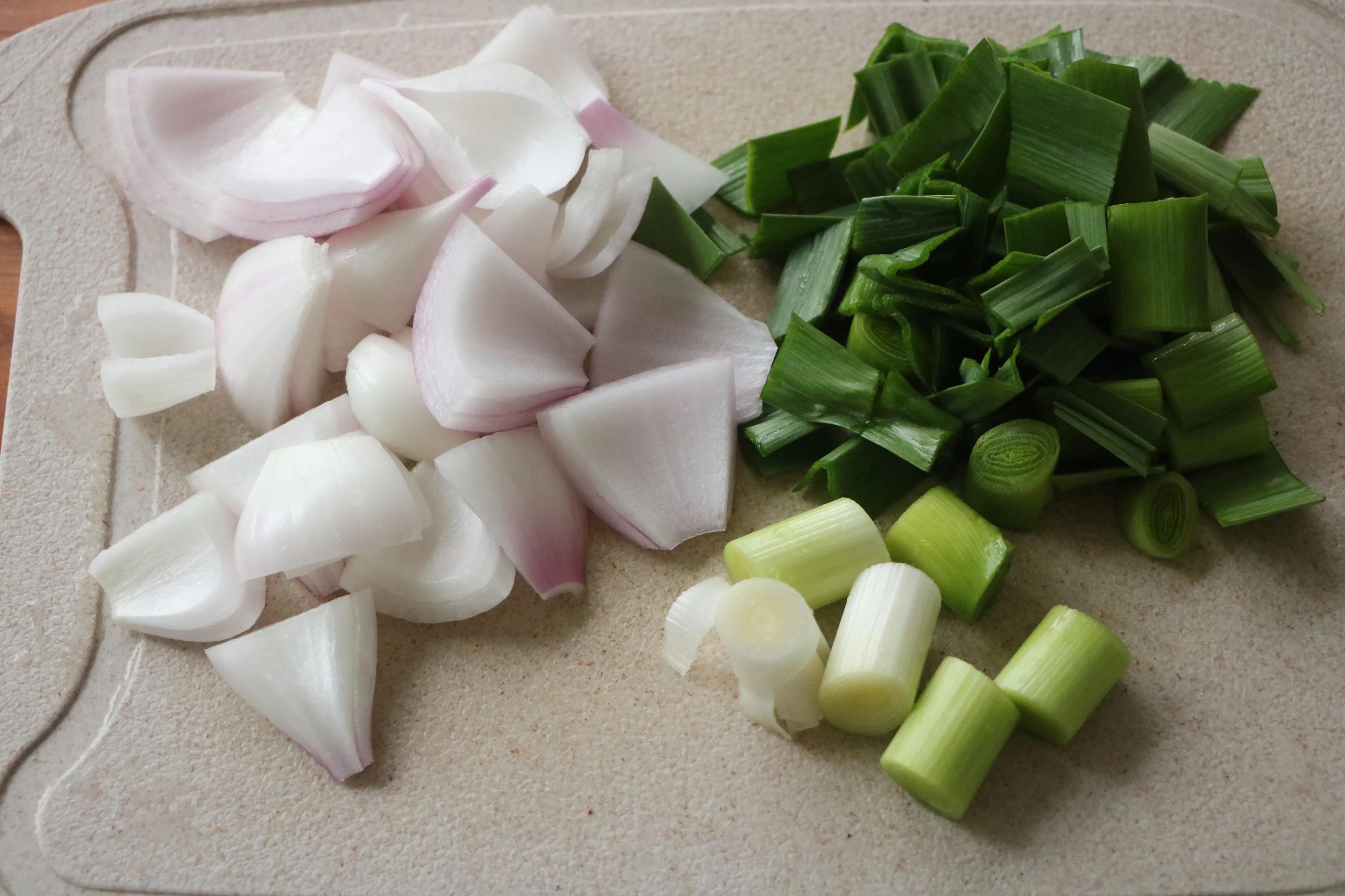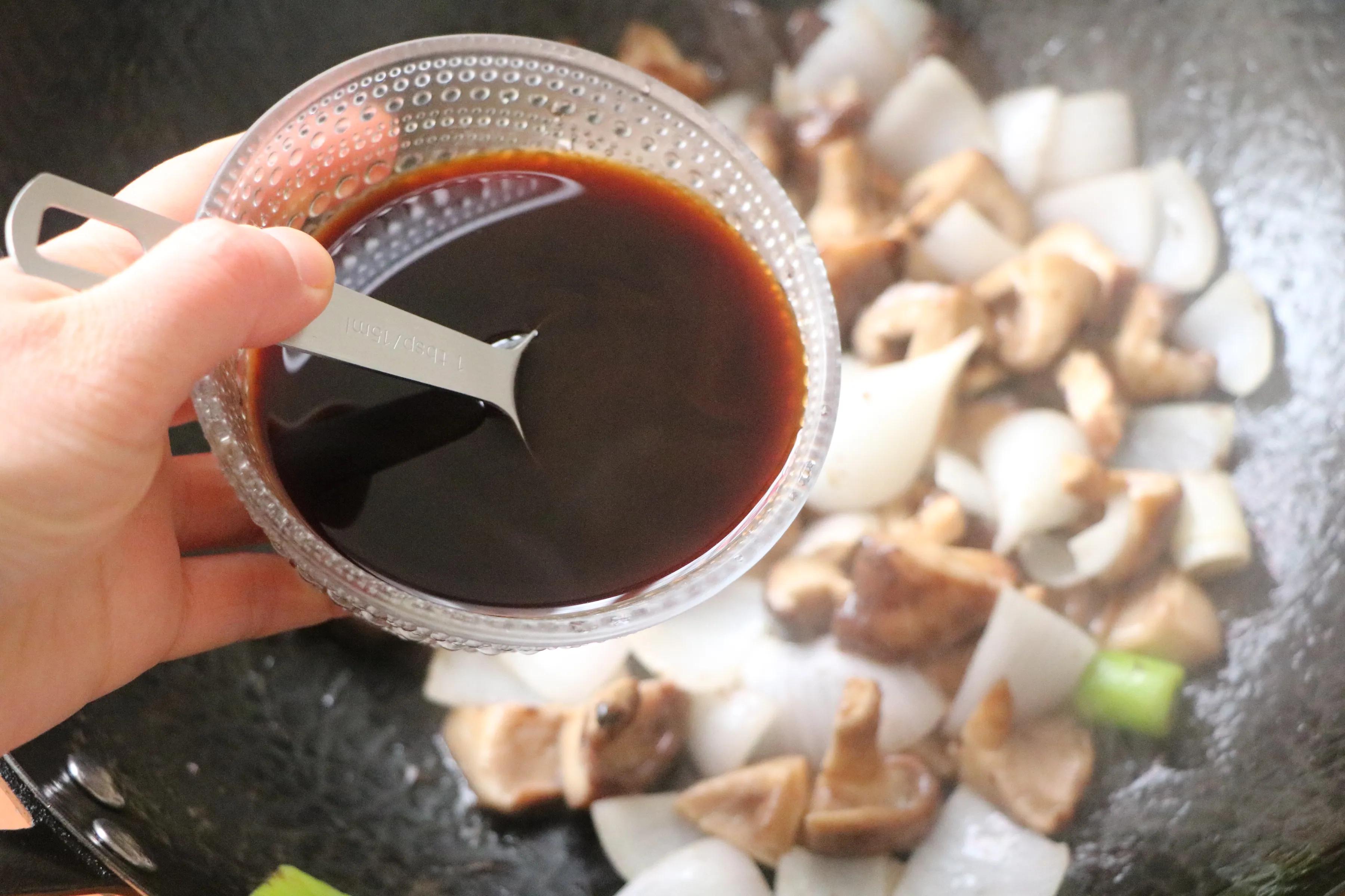 制作配料:香菇300克 洋葱1个 蒜苗1根 酱汁:生抽1勺 老抽半勺 蚝油1勺 盐半勺 米醋1勺 淀粉1勺 清水半碗