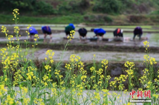 资料图:谷雨节气刚过,贵州省丹寨县民众抢抓农时,耕田、栽插。中新社记者 贺俊怡 摄