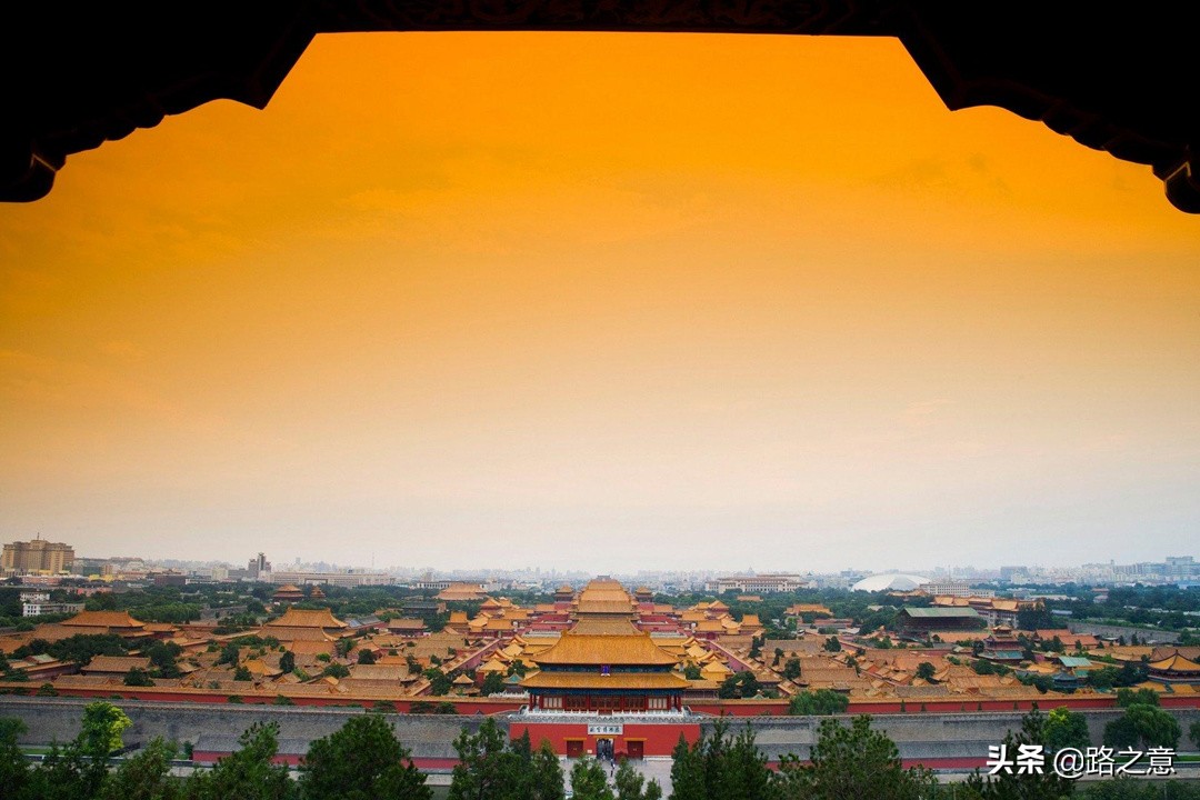如今,当我们登上景山万春亭,南望,金色瓦顶鳞次栉比,宫殿横脊由密而疏,最后延伸到茫茫郊原,情景波澜壮阔,激动人心;北望,街道绵长,一波三折,高耸的钟鼓楼直把人的思想引到遥远的草原,引到蓝天白云之中。而如此长达7.5公里的全城中线,在全世界只有北京城拥有。