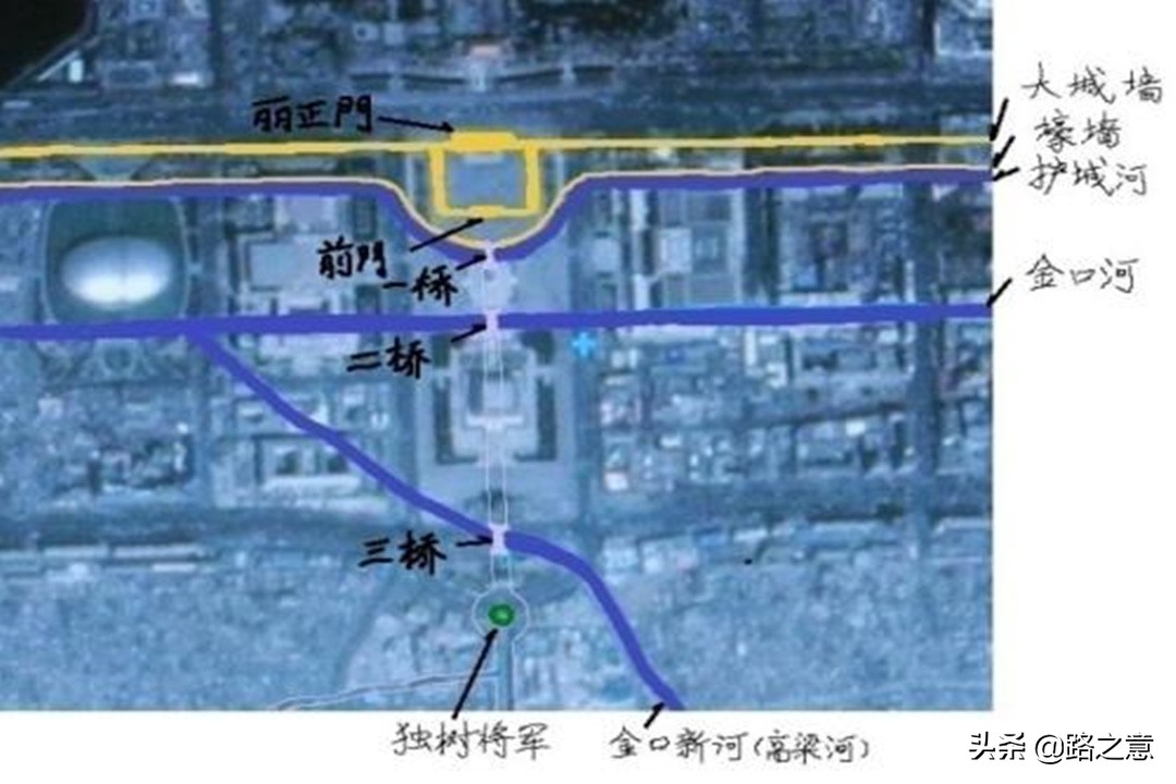 但是,由中央子午线确定的北京城市规划的科学体系,却使北京城成为世界上最优秀的城市规划实例。我们从北京城航拍图上可以看到,以御道为中心的南北干线贯穿着北京全城。它南起永定门,穿过正阳门箭楼、正阳门正楼、毛主席纪念堂、人民英雄纪念碑(此处原为“大清门”)外金水桥、天安门、端门、午门、内金水桥、太和门、太和殿、中和殿、保和殿、乾清门、乾清宫、交泰殿、坤宁宫、坤宁门、天一门、钦安殿、承光门、顺贞门、神武门、景山正门、景山万春亭、寿皇门、寿皇殿、地安门桥,一直到达鼓楼、钟楼。它仿佛一部气势磅礴的交响乐曲,永久地回荡在我们祖国的锦绣山河之上。