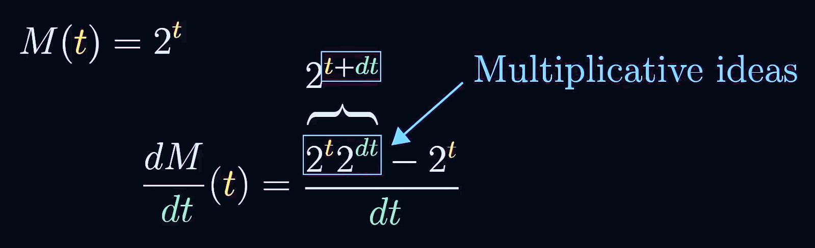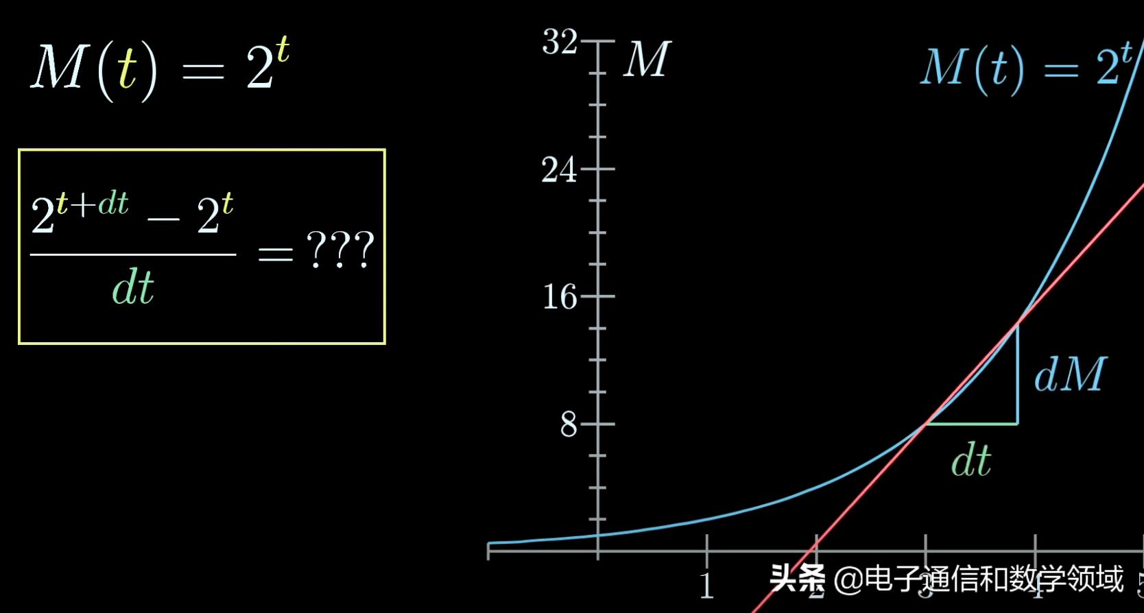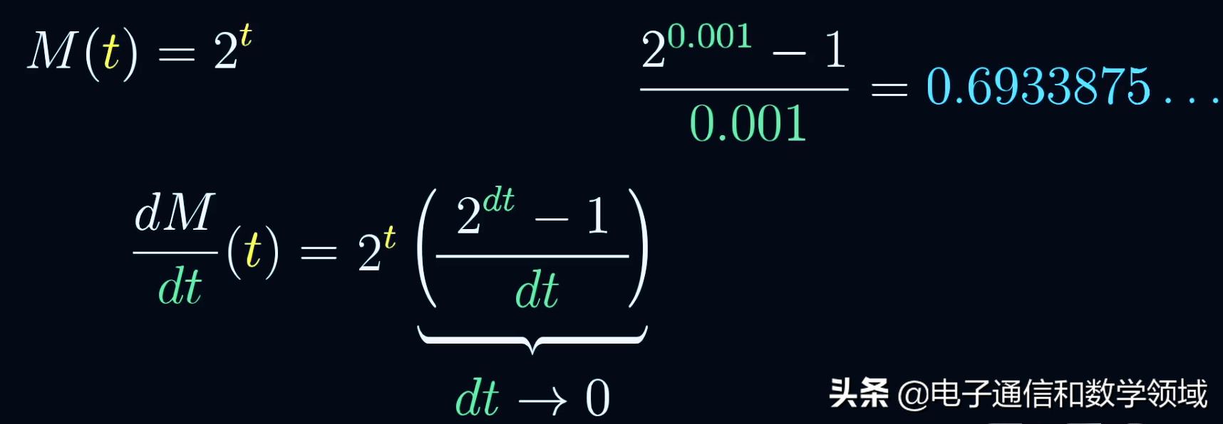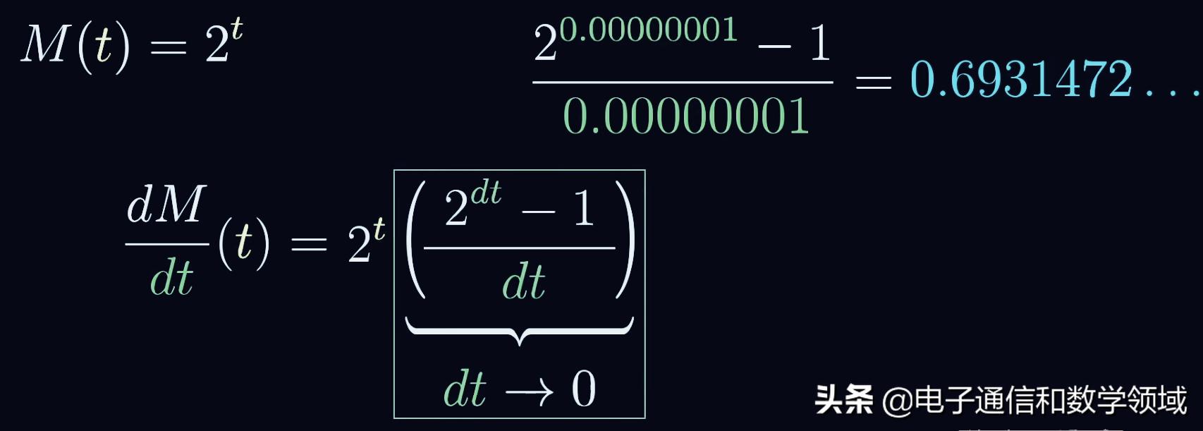 所以我们可以肯定2^t的导数就是2^t乘以一个常数,这是所有指数函数都有的特性