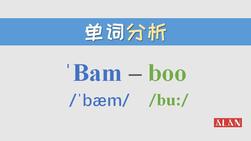 回到这个单词,回顾一下它两个音节的发音:bam-boo,重读在第二个音节上。是不是很简单呢?
