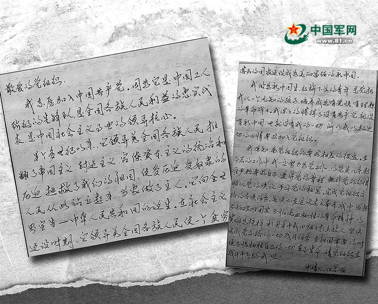 “决心在这次去边境作战中,发扬不怕艰难困苦,不怕流血牺牲的革命精神,以英雄为榜样”“在祖国需要的时候不惜牺牲自己的一切,请党组织在战斗中考验我吧”……和大家一样,都值青春年华、风华正茂,为什么田志强烈士为了完成侦察任务、为关键战斗提供情报,能够誓死坚守阵地,哪怕献出生命?我想,读完这份入党申请书就会找到答案:因为共产党人是特殊材料制成的,一不怕苦、二不怕死。