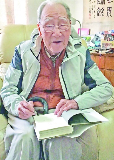 2021年4月6日,著名翻译家许渊冲在新近出版的《西南联大求学日记》扉页上签名。光明日报记者刘彬摄
