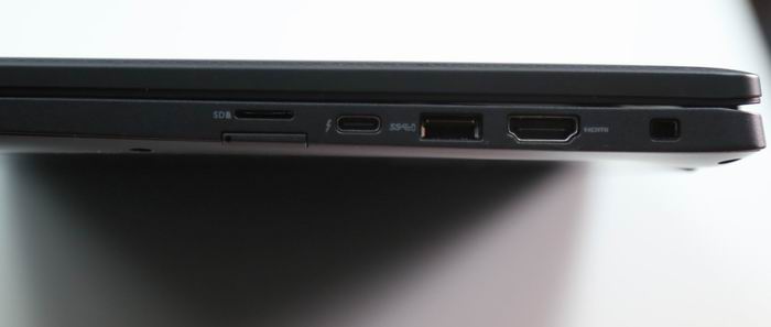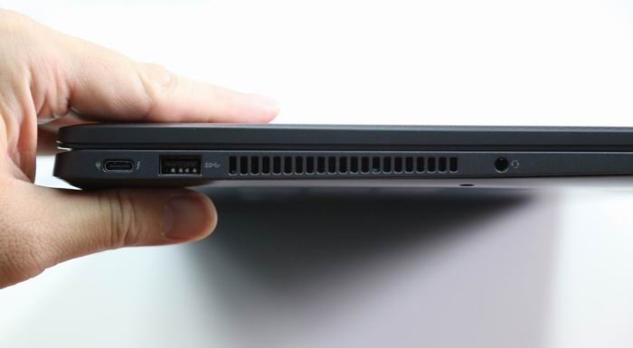 机身两侧的接口还是比较丰富,左侧有3.5mm耳机接口和一个USB Type-C接口和一个USB 3.2接口,右侧有TF卡接口、uSIM卡插槽、HDMI接口、各一个USB Type-C接口和USB 3.2接口,另外还有一个此楔形电脑锁插槽。值得注意的是,左右两个Type-C口都是标准的Thunderbolt 4 端口,支持供电和 DisplayPort,这意味着这台电脑不需要额外的电源接口,所以附送的充电器也改为了65W的Type-C接口充电器,体积小了不少。以后出差,除了原装充电器,也可以用65W的手机充电器直接给笔记本充电。而散热口被设计在整机后方和左侧,避开了日常使用时被热风“吹烤”手掌的尴尬。