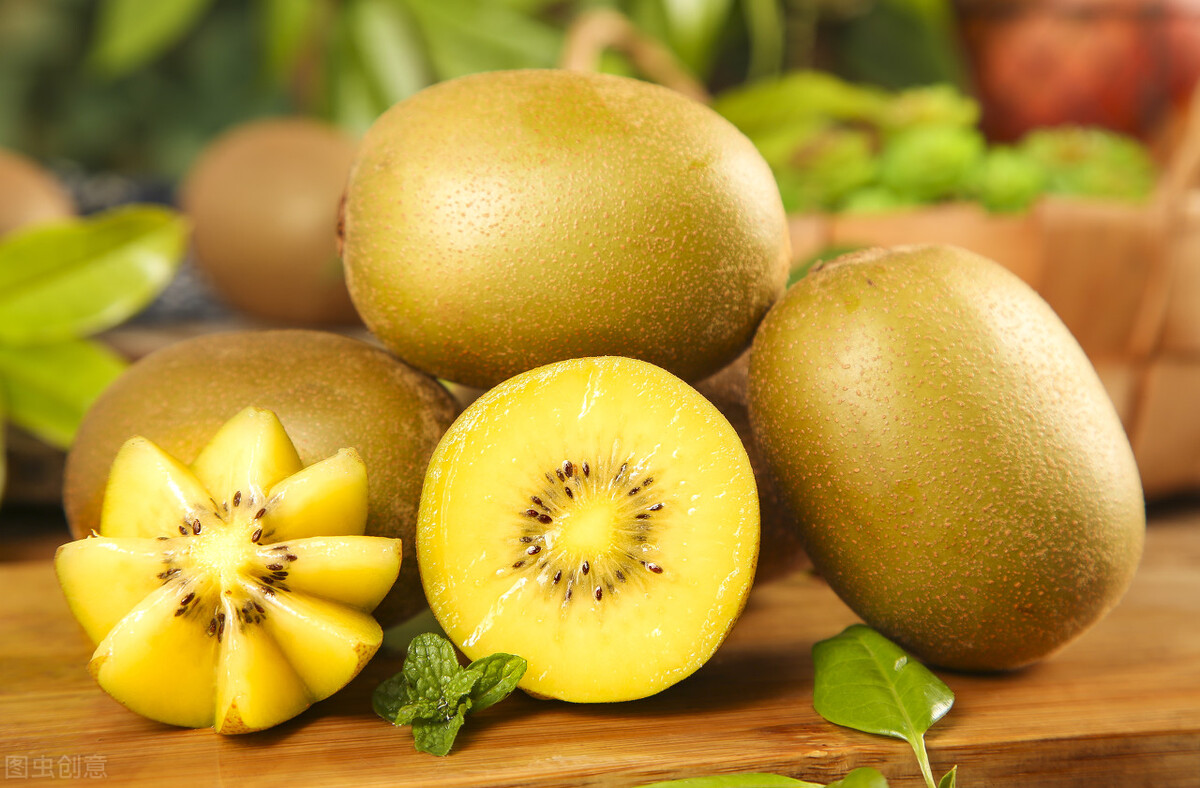 木垫子上放着猕猴桃 黄心猕猴桃 奇异果 黄心奇异果
