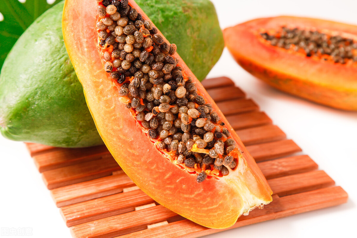 木瓜味甘性平。木瓜的功效很多,降压、解毒、消肿驱虫,帮助乳汁分泌,让胸部更丰满、消脂减肥等。