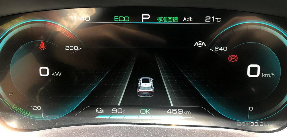 本次试驾活动还有一段节能挑战,总路程大概100公里左右,涉及山路、高速和城市道路,具体路线为北京古北水镇出发,北六环附近结束。在出发时,车辆为满电续航505km的状态,小计里程一为0。待最后到达目的地后,车辆续航剩余459km,小计里程一为99.8km。即在实际99.8km的路程中,车辆续航掉了46km。
