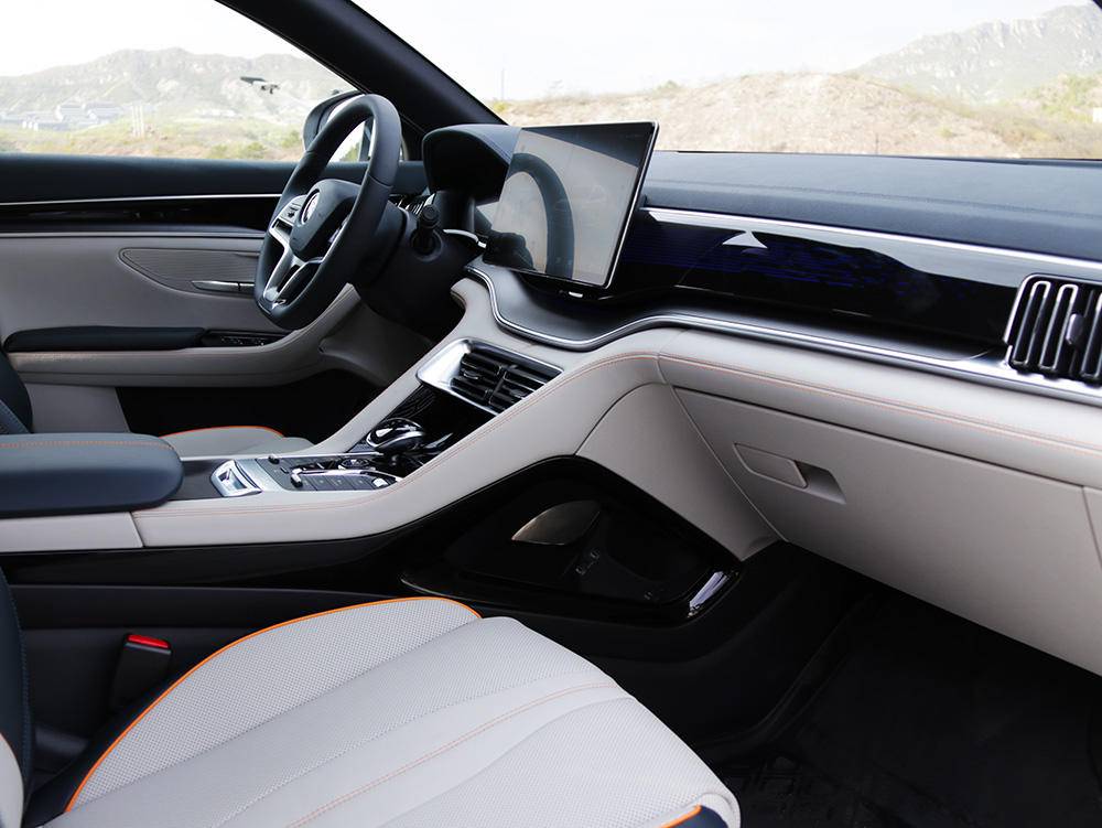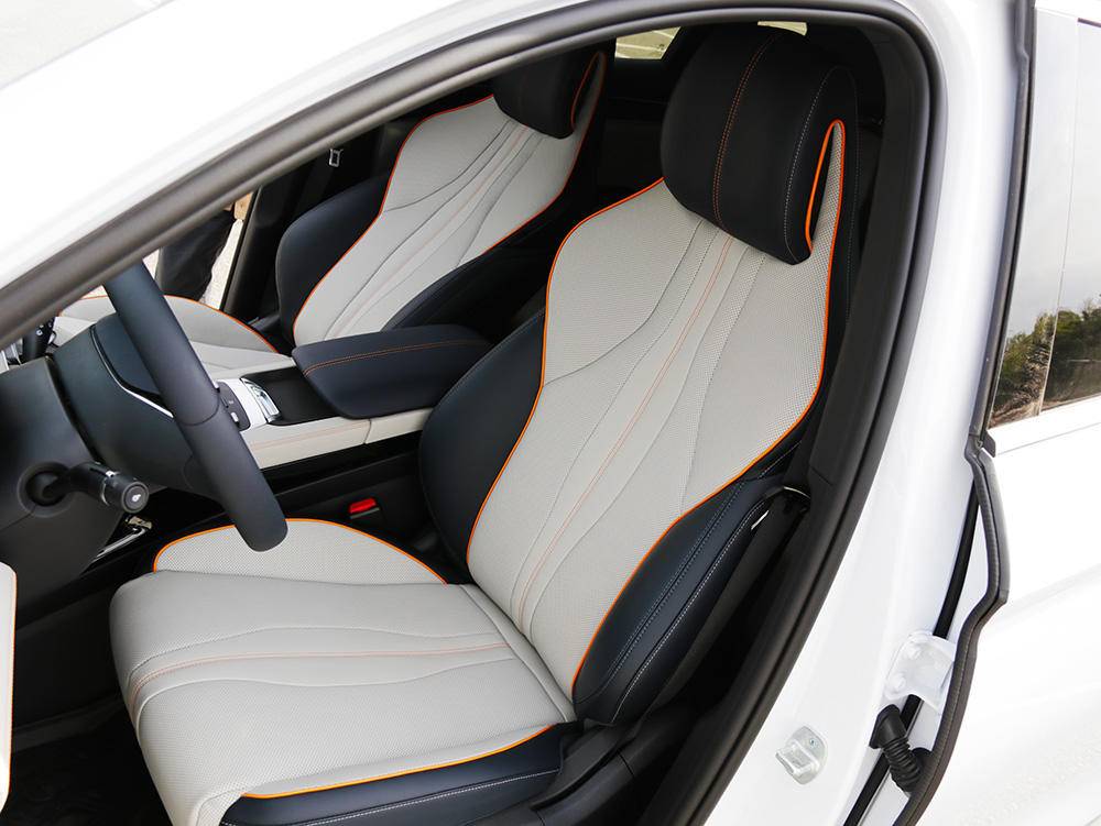 笔者个人很喜欢车内的缝线,橙色缝线与浅色的材质的搭配,非常好看。