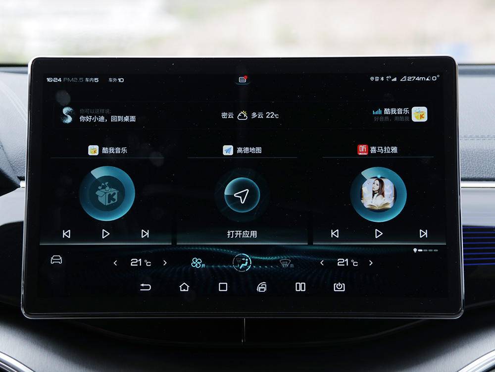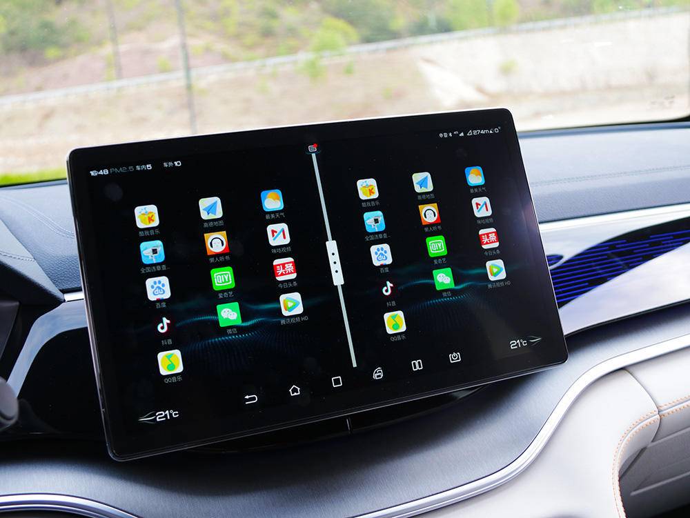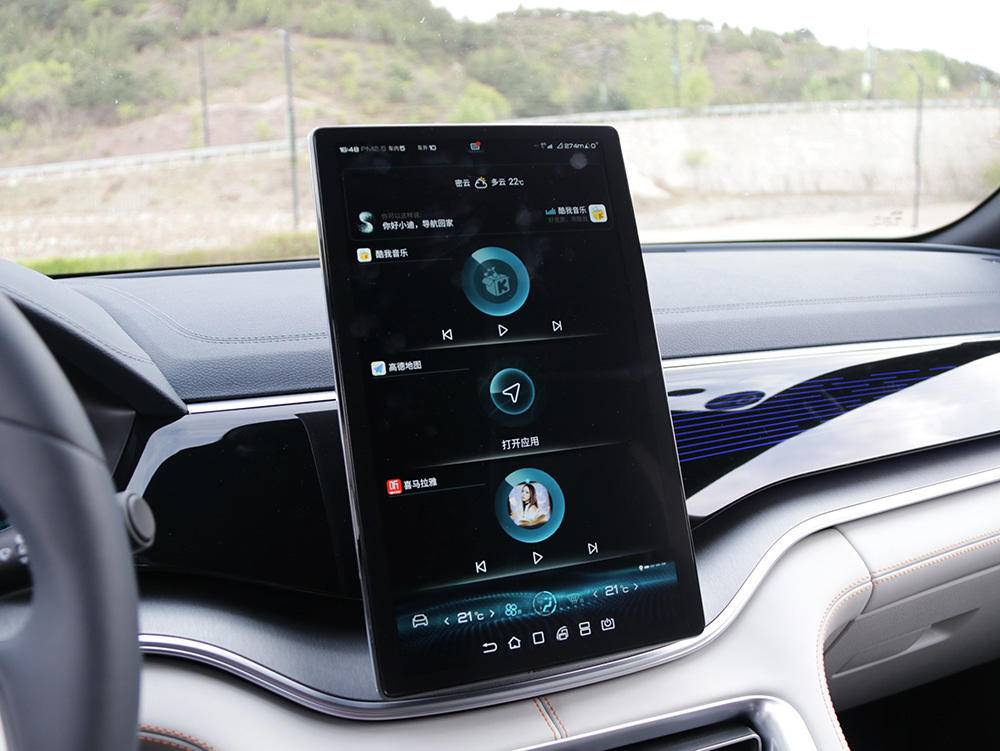 12.3英寸的液晶仪表+12.8英寸液晶中控屏的双大屏集成了比亚迪最新的Dilink 3.0智能网联系统,车机系统在操作上非常流畅顺滑,且除了比较普遍的导航等功能,还具有基于科大讯飞智能语音软件技术打造语音助手,一句“你好小迪”即可唤醒,辅助操控车内的诸多功能。