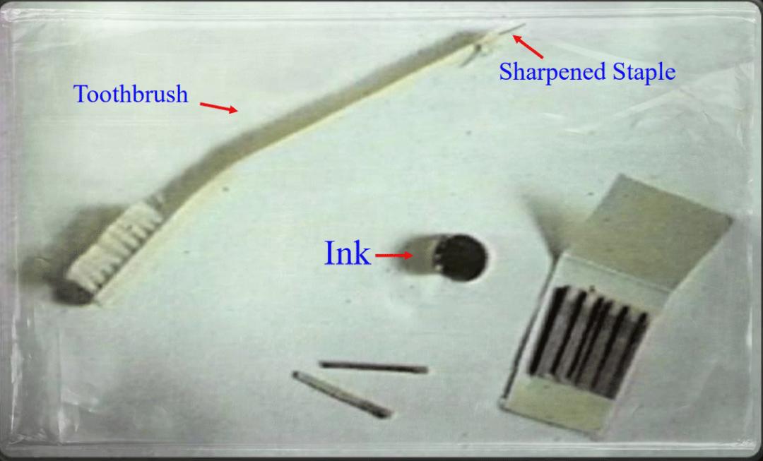 对于“勤劳、朴实”的狱友们来说,他们会利用手边的任何工具攒出一把纹身枪,一小盒纹身油墨。