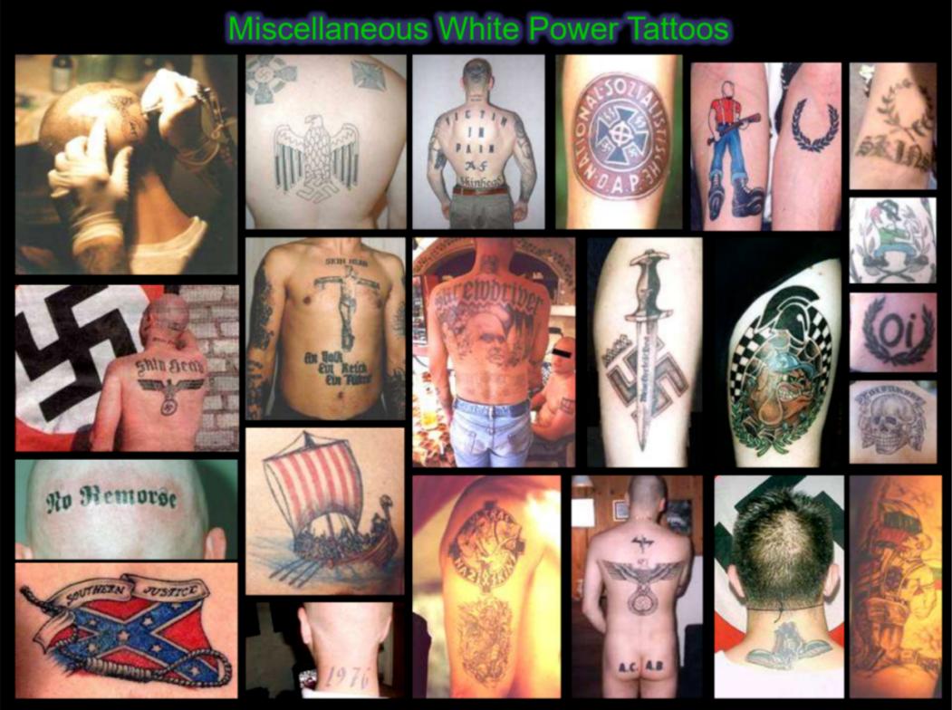 那些信奉“白人至上”的犯人,其纹身也都很好识别,从万字旗到铁十字,再到“KKK”。