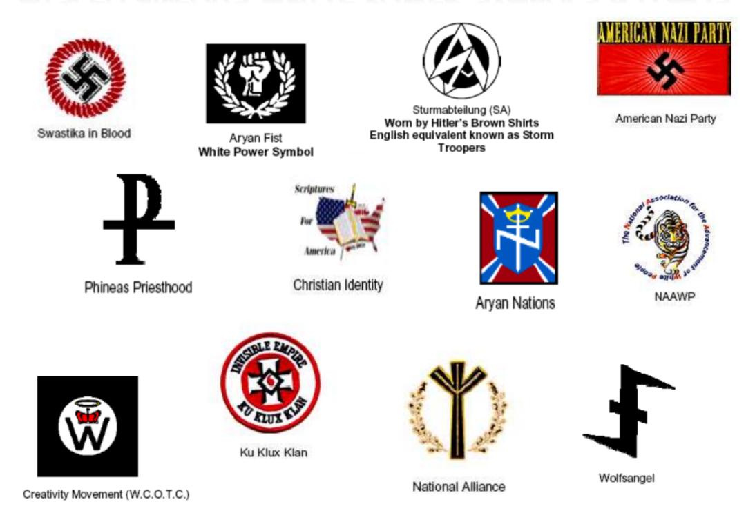 同样信奉“白人至上”的“雅利安兄弟会”(ARYAN BROTHERHOOD),会将帮派的英文缩写“A”“B”与幸运草或者是代表死亡的骷髅结合。