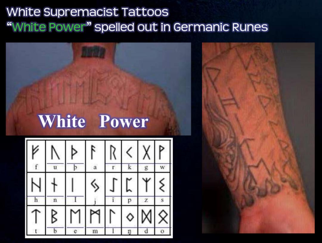 除了血帮的“双13”字母密码很隐秘之外,同样隐秘的纹身是白人狱友使用的一种非常古老的“卢恩字符”。