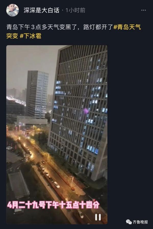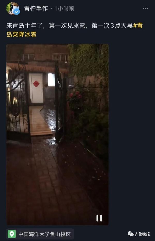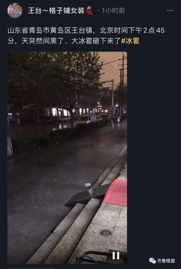 青岛、东营、烟台等地狂风暴雨+局部冰雹