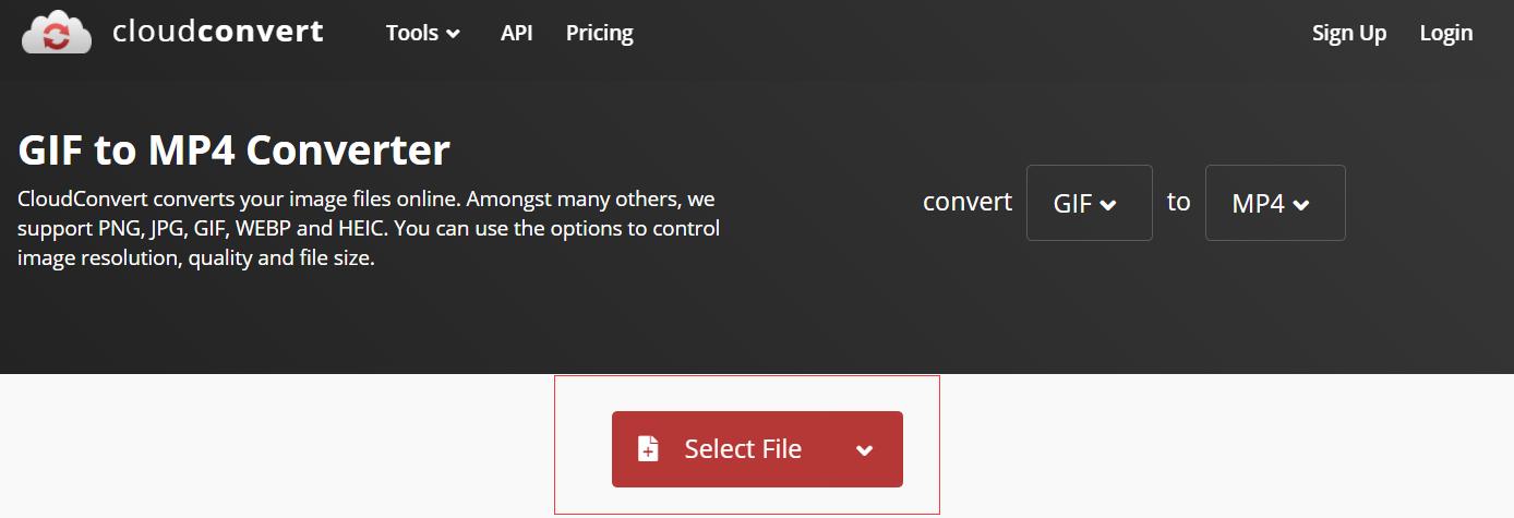 第二步,打开cloudconvert.com/gif-to-mp4这个地址,这个网站可以把GIF图片转成视频。(完全免费,不用注册)